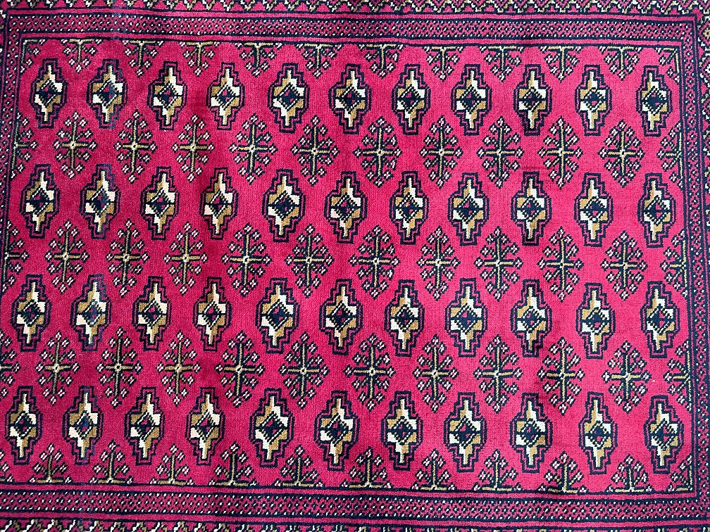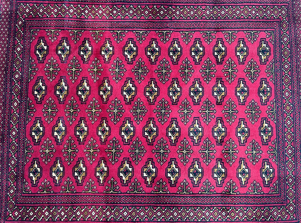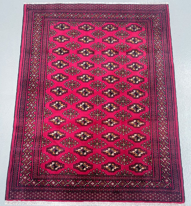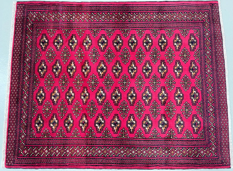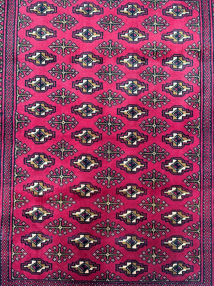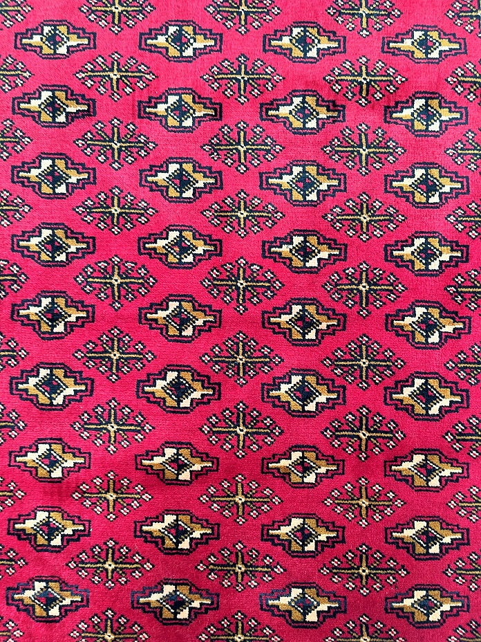 Authentic Handmade Tribal Bokhara Design Persian Turkoman Rug. Above All It Is Pure Hand Spun Wool Pile On Cotton Base. It Also Has A Red, Beige, Brown And Black Tone Dyed Using Traditional Methods.