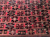 Full Room Size Nomadic Handmade Persian Kurdi Rug. It Has A Pure Hand Spun Wool Pile On Cotton Base. It Also Has A Black, Red And Brown Tone Dyed Using Traditional Methods.