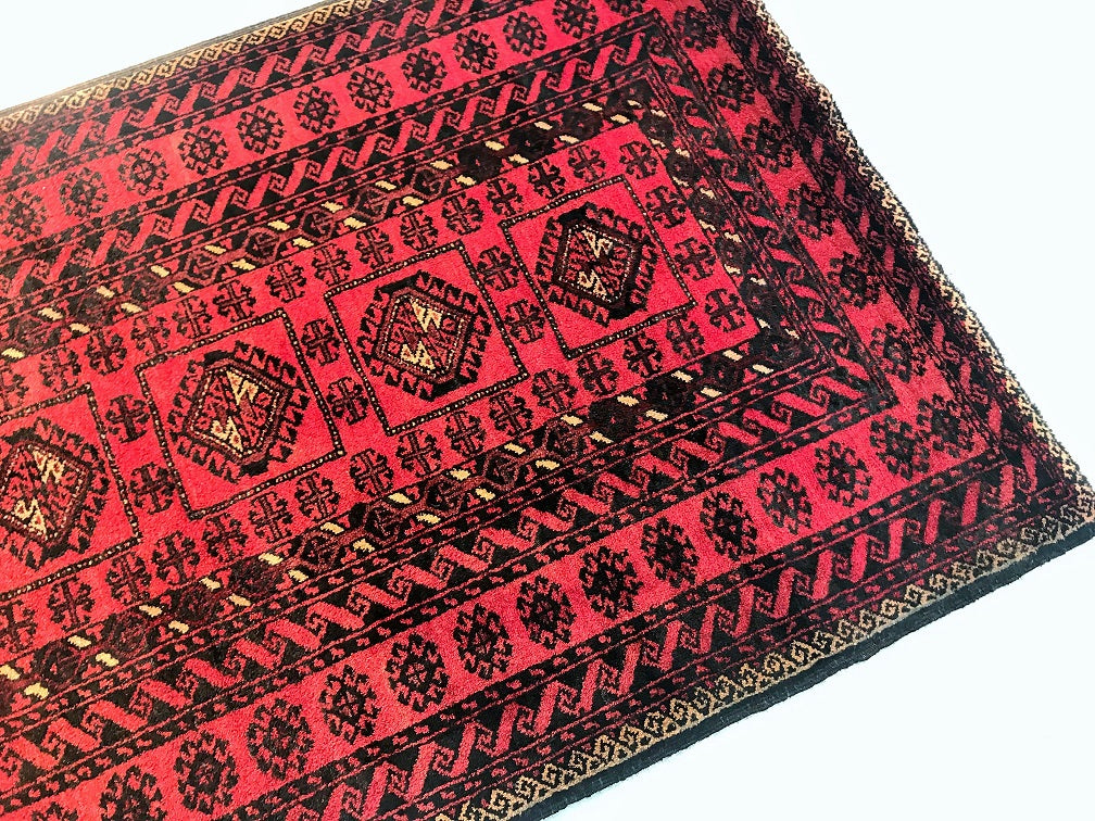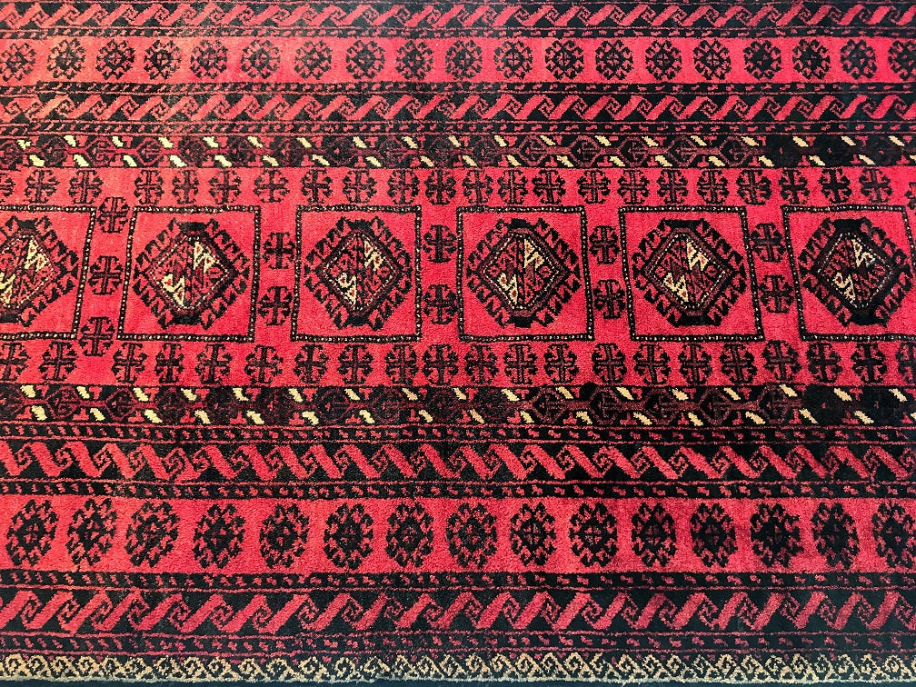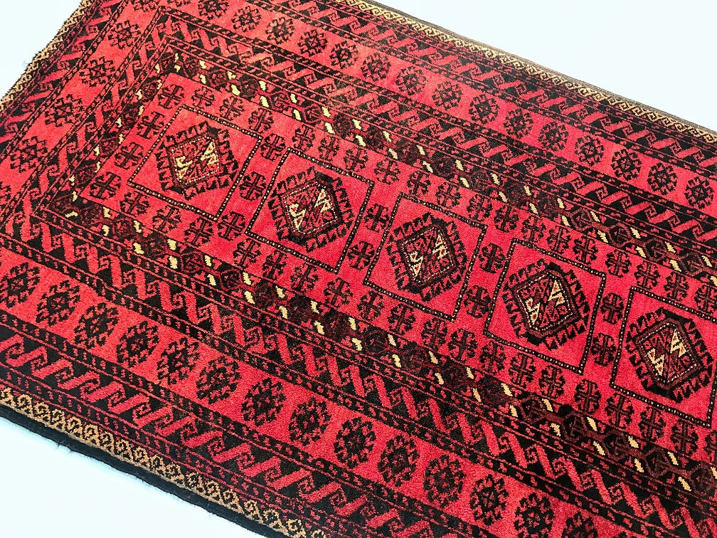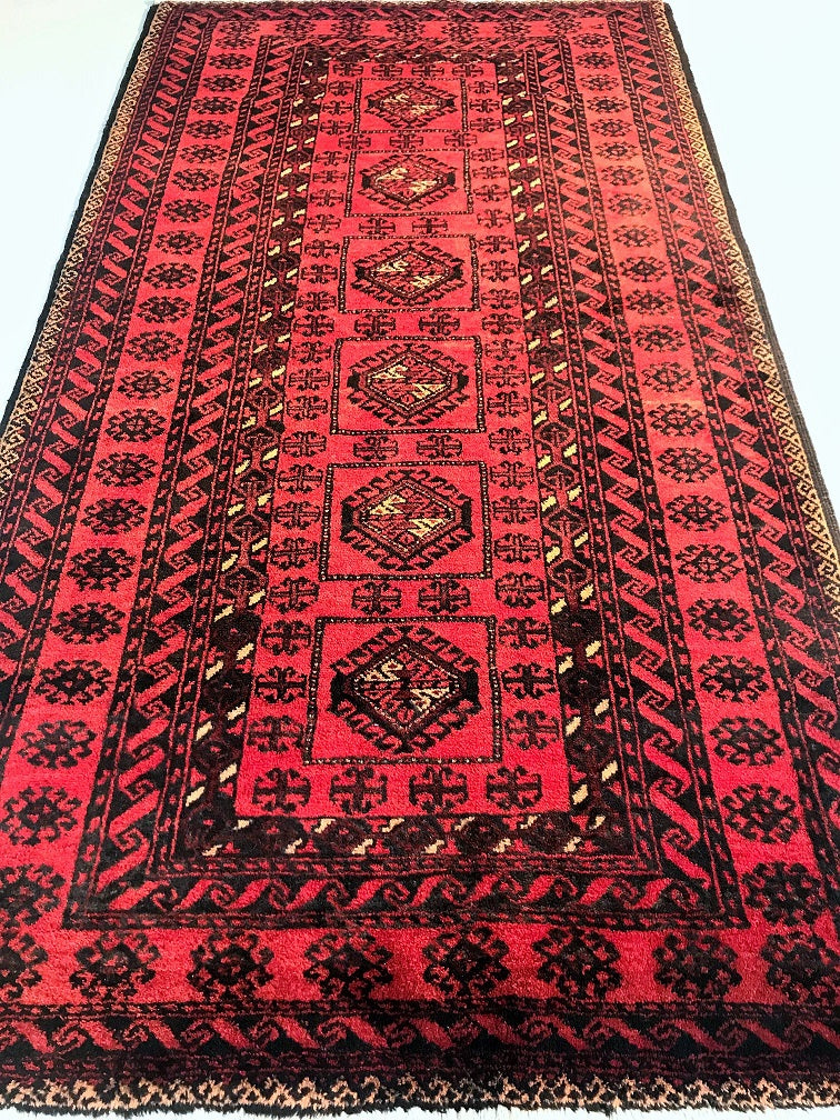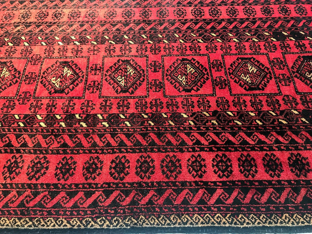Hard Wearing Tribal Balouchi Rug. Above All It Has Pure Hand Spun Wool Pile On Cotton Base. Deep Red Tone Dyed Using Traditional Methods.