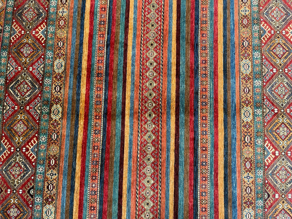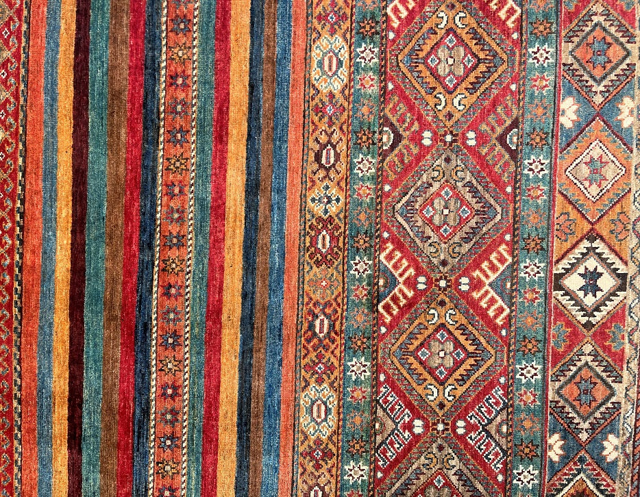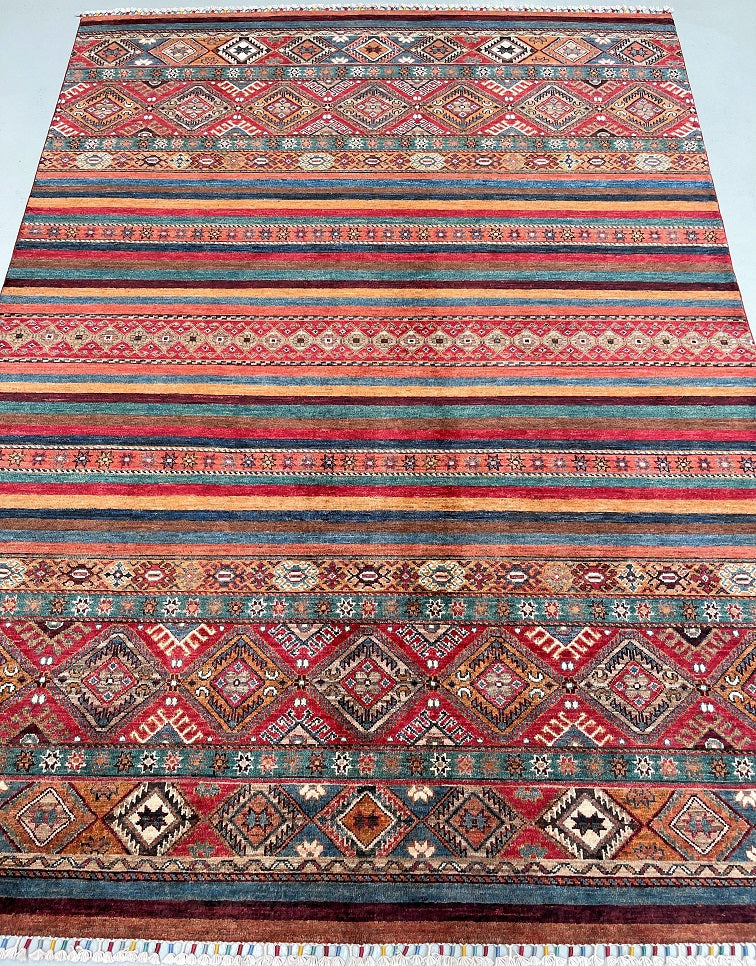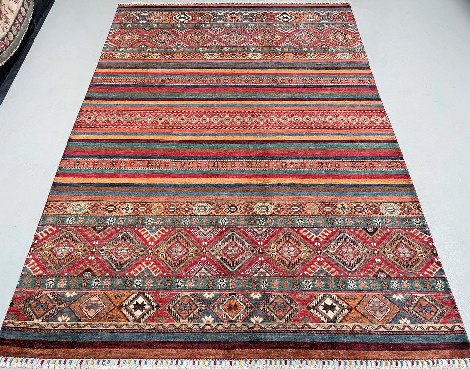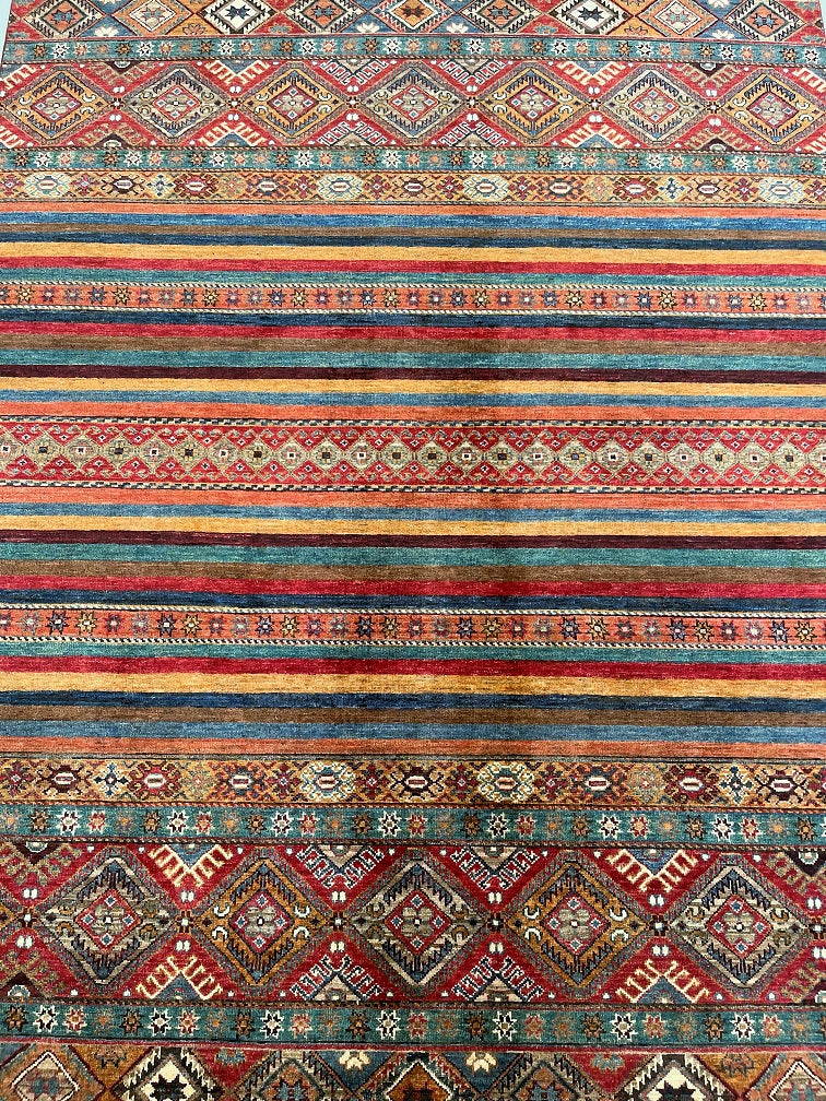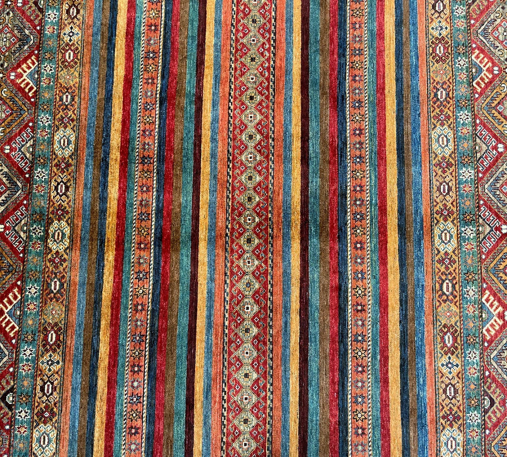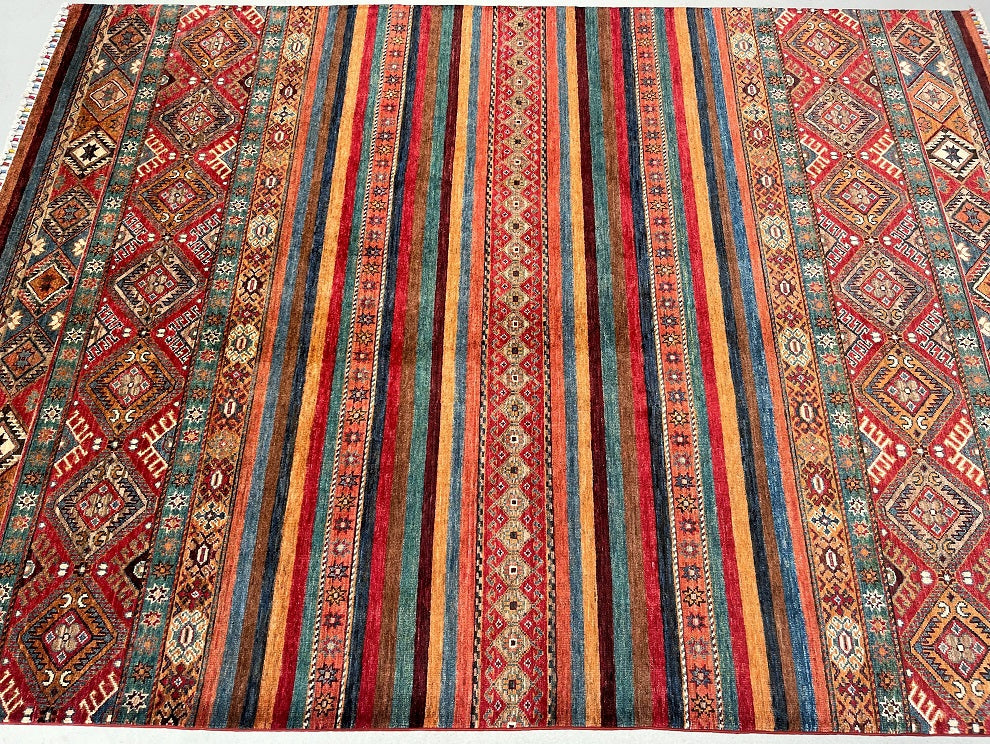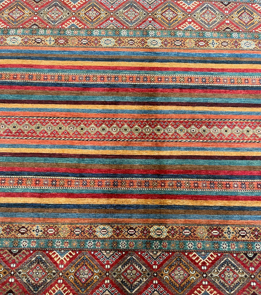 Decorative Room Size Authentic Hand Knotted Afghan Super Kazak Rug. Above All It Has A Pure Wool Pile On Cotton Base. Unique Multi-Color Tone Dyed Using Traditional Methods (Vegetable Dyes). Last Of True Woven Nomadic Art.
