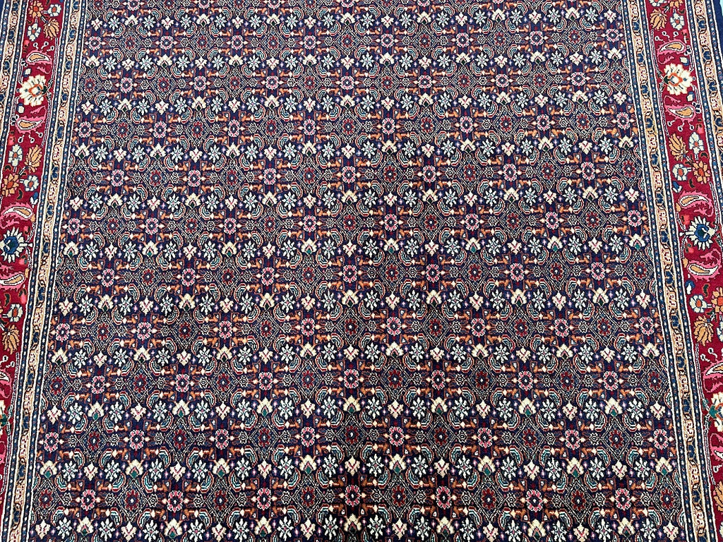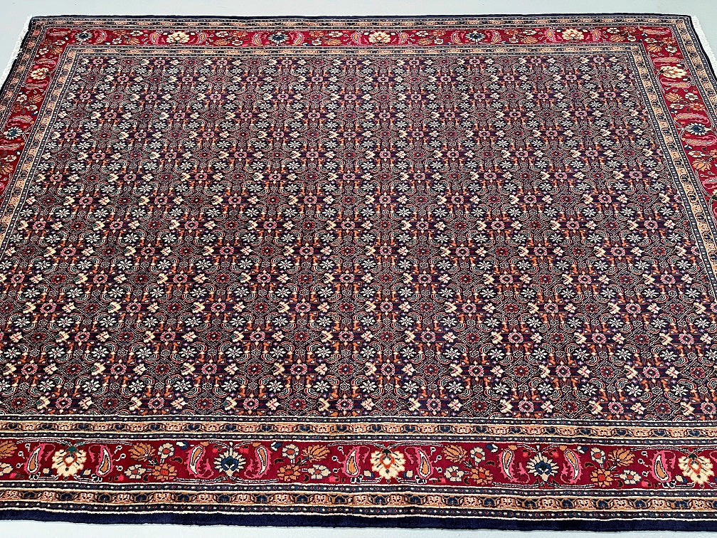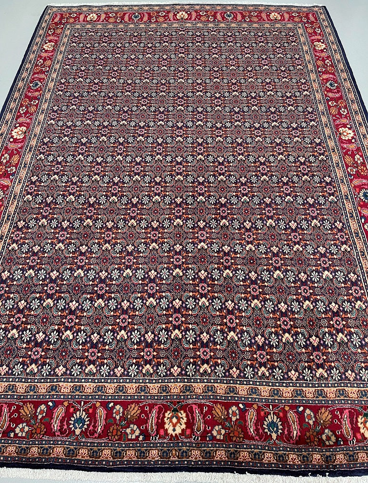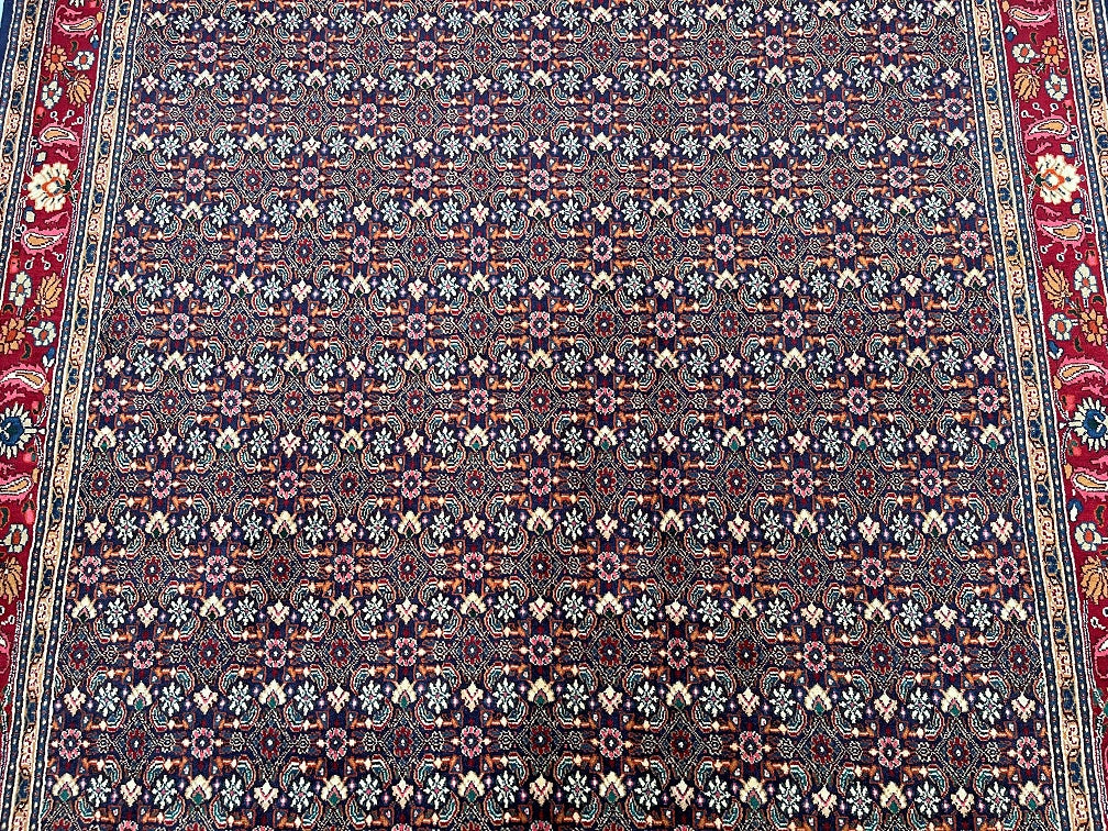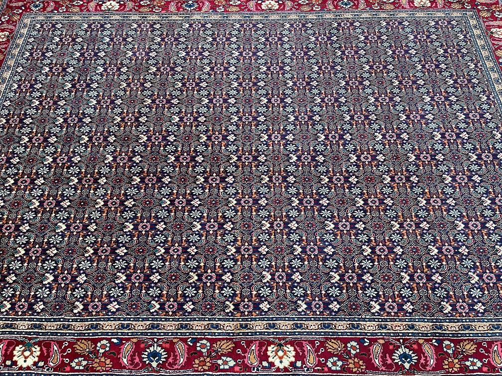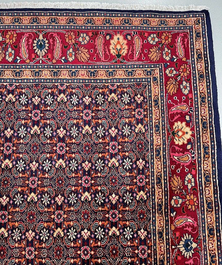 Full Room Size Authentic Handmade Persian Birjand Rug. Above All It Has A Pure Lamb’s Wool Pile On Cotton Base. Indigo Blue Background Dyed Using Traditional Methods.