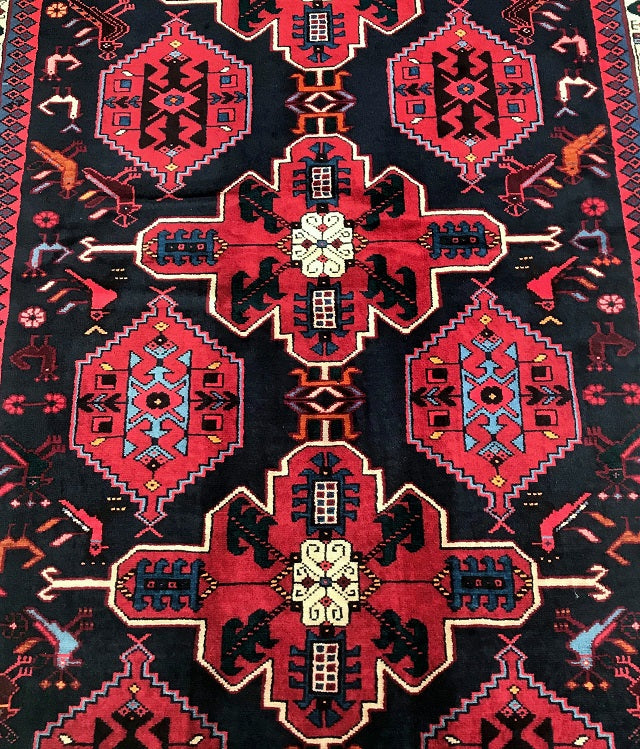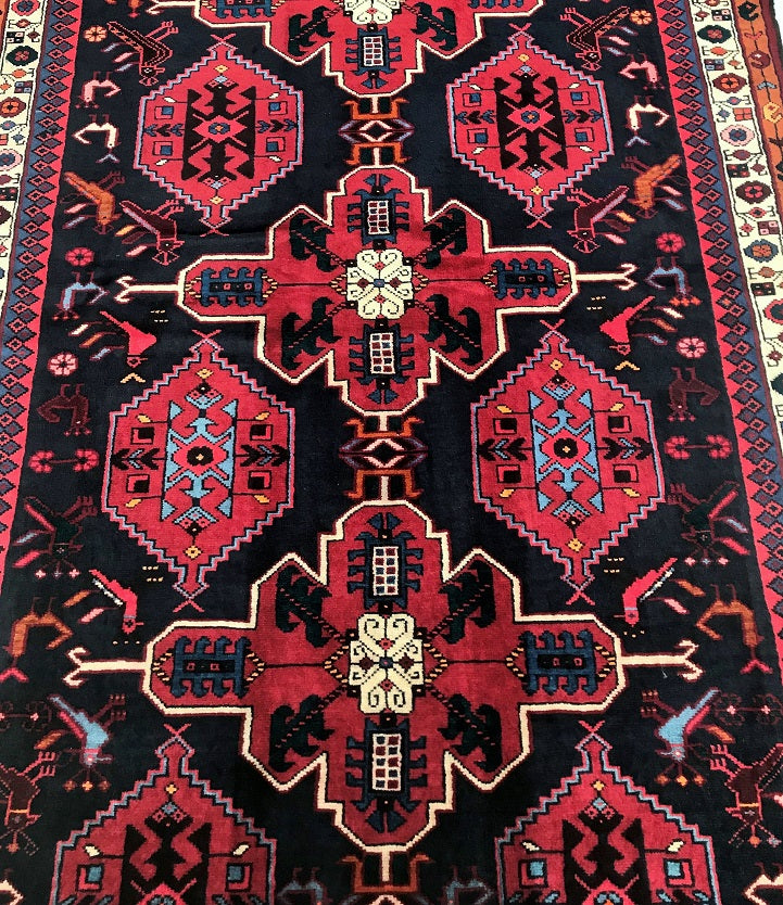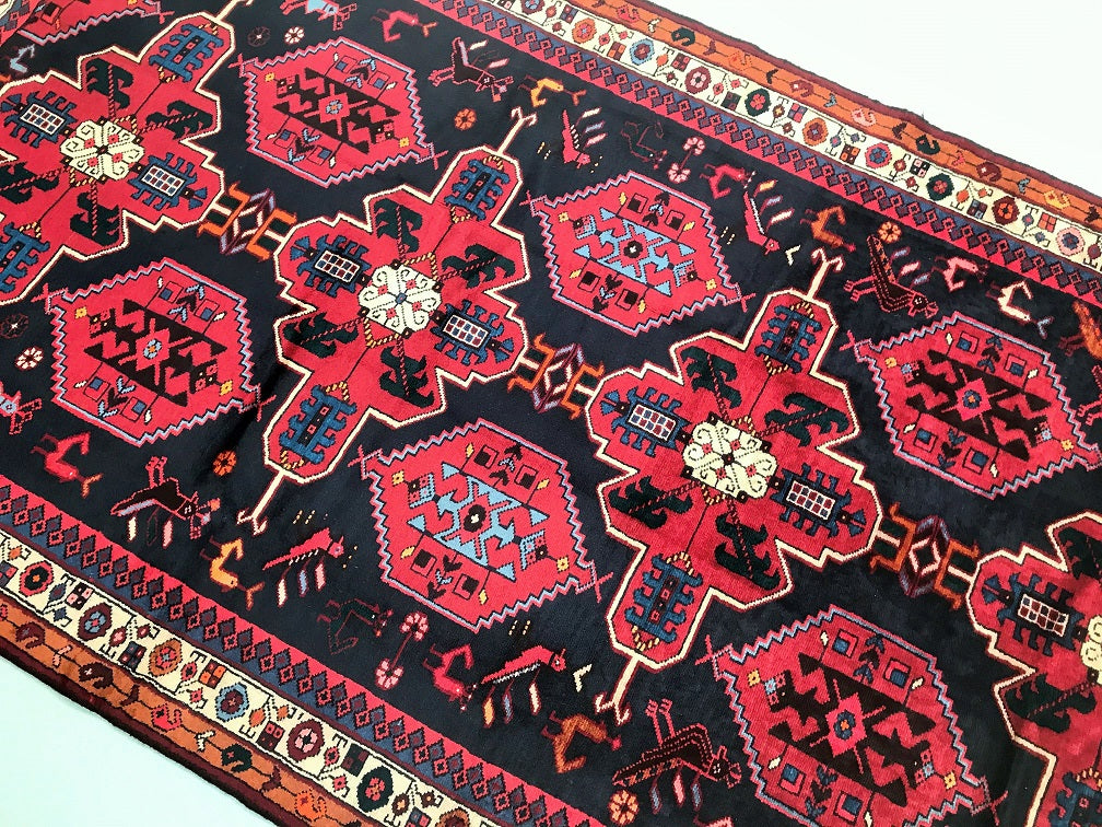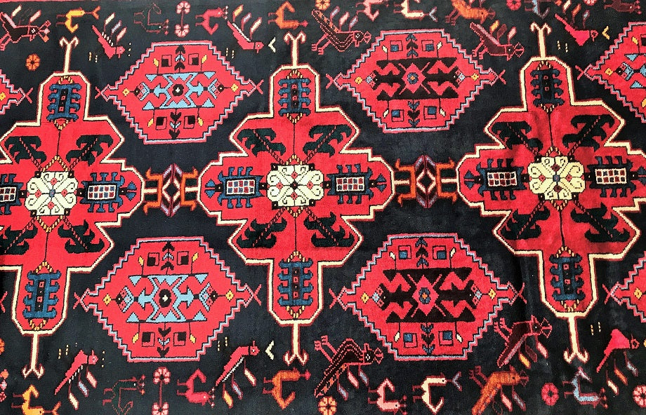 Rare Handmade Persian Village Hamadan Rug. Above All It Is An Ideal Piece For A Wide Corridor Or Hall. Pure Hand Spun Wool Pile On Cotton Base. It Also Has An Indigo Blue Background Dyed Using Traditional Methods.