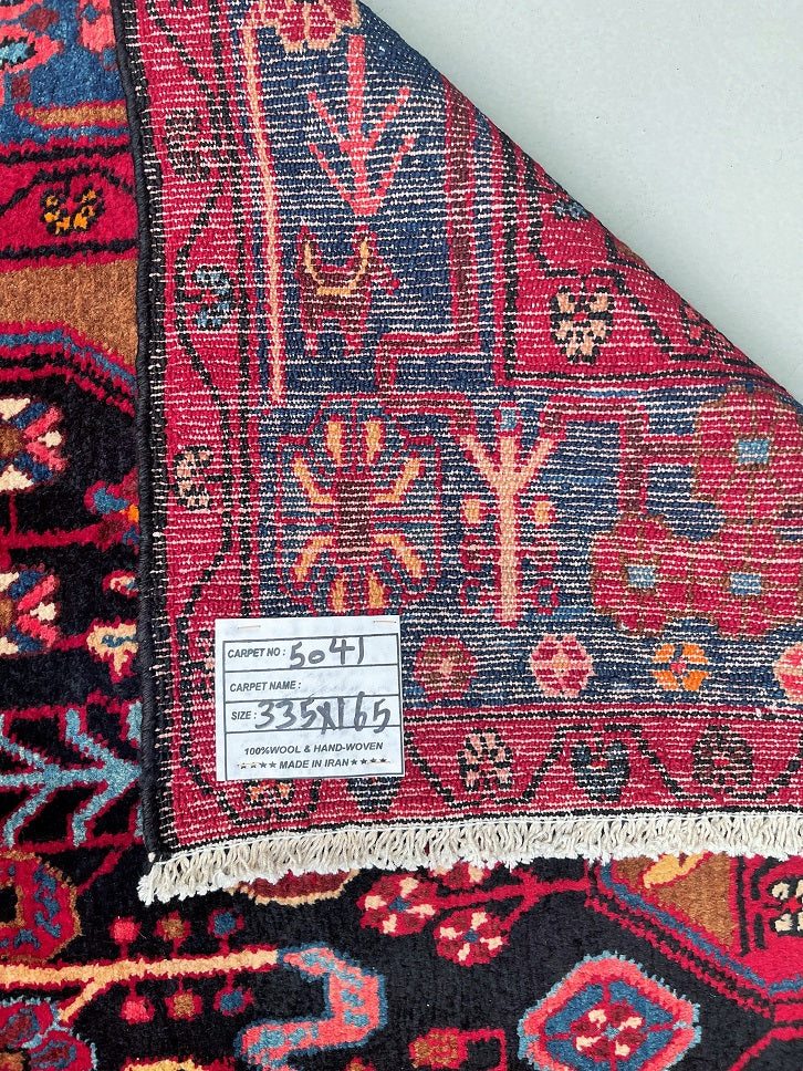 Free Shipping Australia Wide Offered! Certified Hand Knotted Persian Rug 335x165cm Full Room Size Authentic Handmade Vintage Persian Nahavand Rug. This rug is truly unique as it is difficult to find tribal rugs in larger sizes. It features a pure ...
