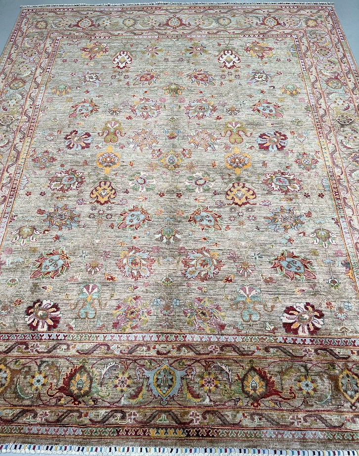 Gorgeous Large Room Size Authentic Hand Knotted Afghan Chobi Rug. Above All It Has A Pure Hand Spun Wool Pile On Cotton Base. Light Brown, Beige, Light Blue, Gold, Red And Green Tone Dyed Using Traditional Methods (Vegetable Dyes). Last of True Woven Nomadic Art.