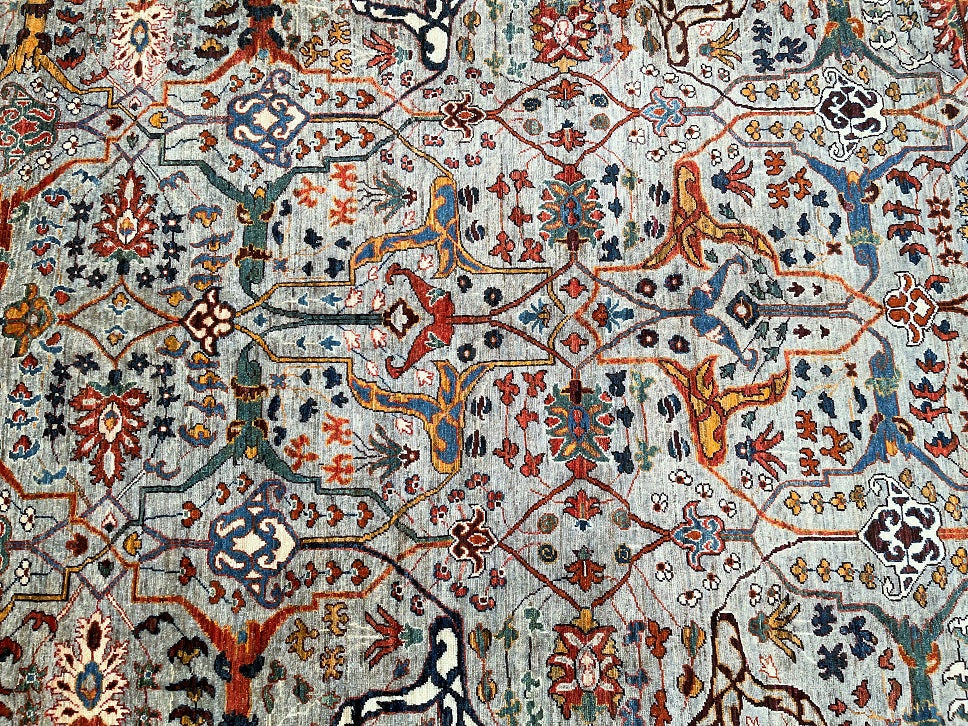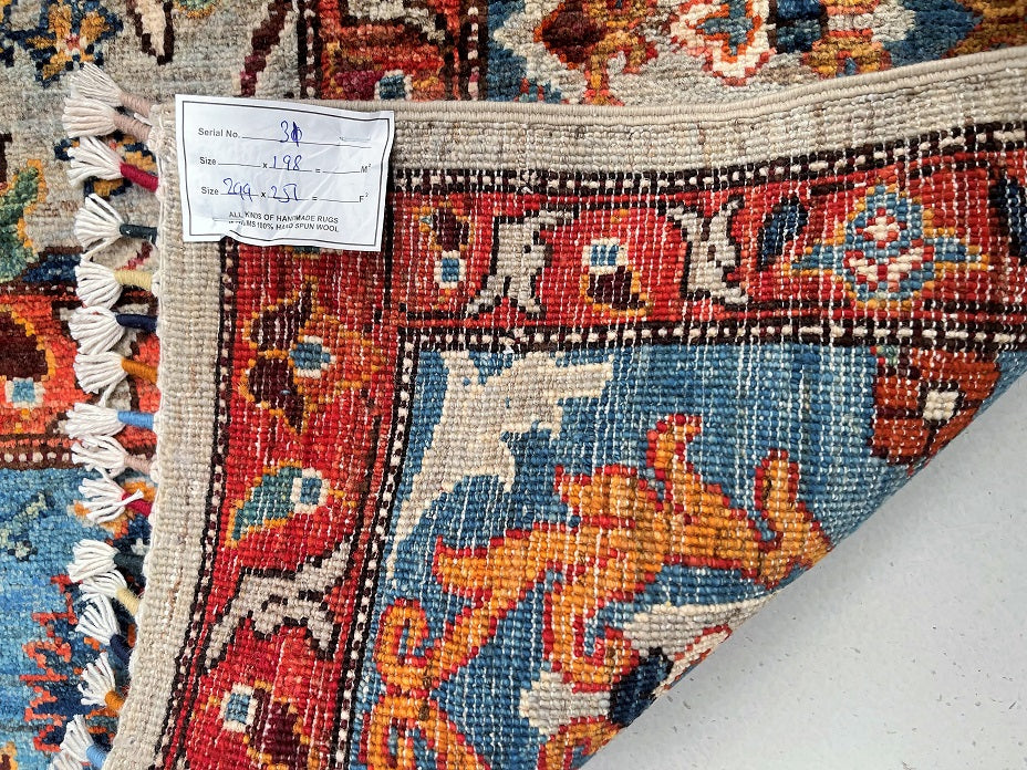 Superb Quality Large Room Size Hand Knotted Sultani Afghan Chobi Rug. Above All It Has A Pure Lamb’s Wool Pile On Cotton Base. Grey, Beige, Pink, Brown, Blue, Green, Gold And Orange Tone Dyed Using Traditional Methods (Vegetable Dyes). Last of True Woven Nomadic Art.