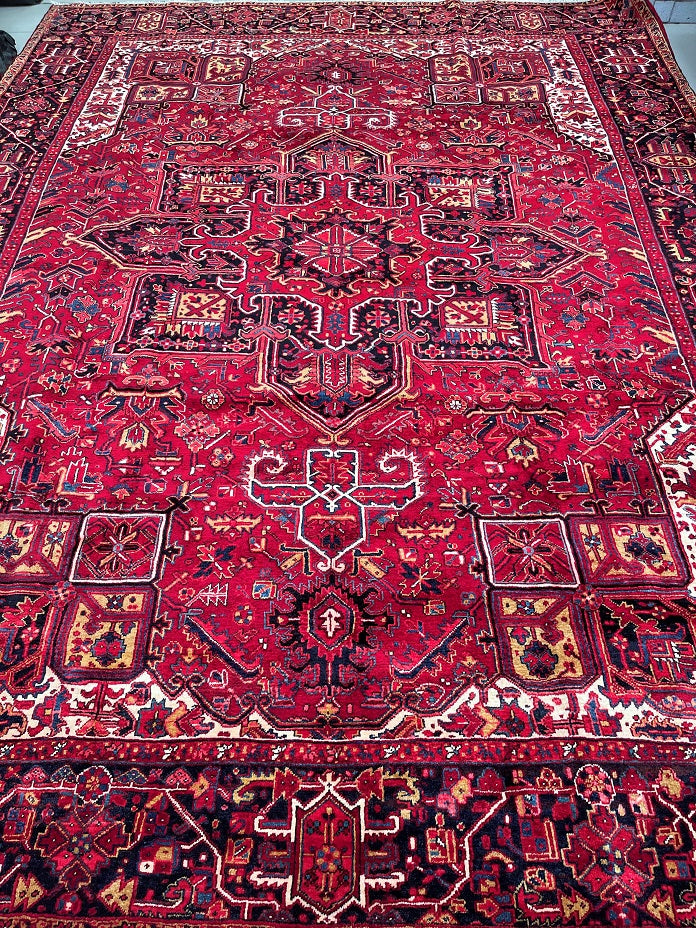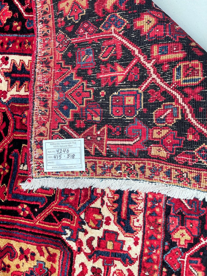 Free Shipping Australia Wide Offered! Certified Hand Knotted Persian Rug 415x318cm Stunning Massive Room Size Authentic Handmade Persian Heriz Rug. Above All Heriz Rugs Are One Of The Hardest Wearing And Very Soft Under The Feet. It Has A Pure Woo...