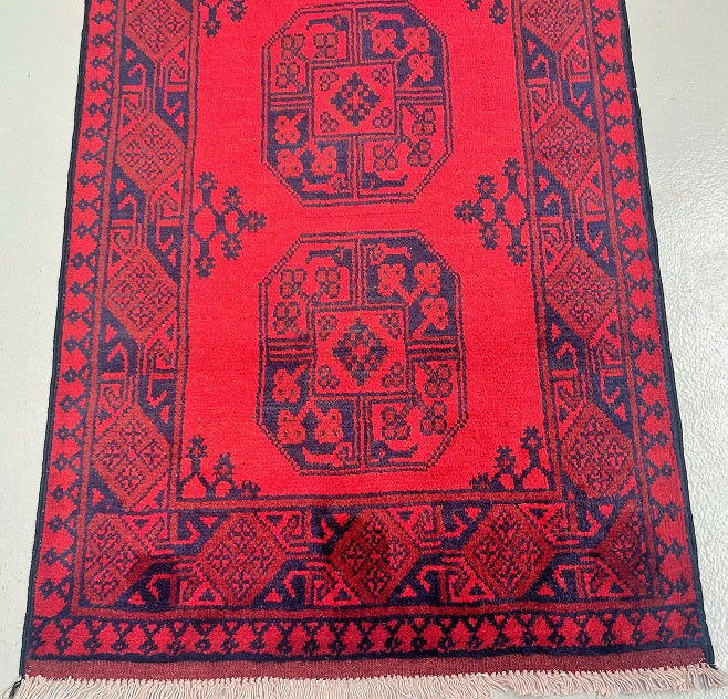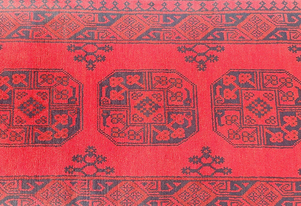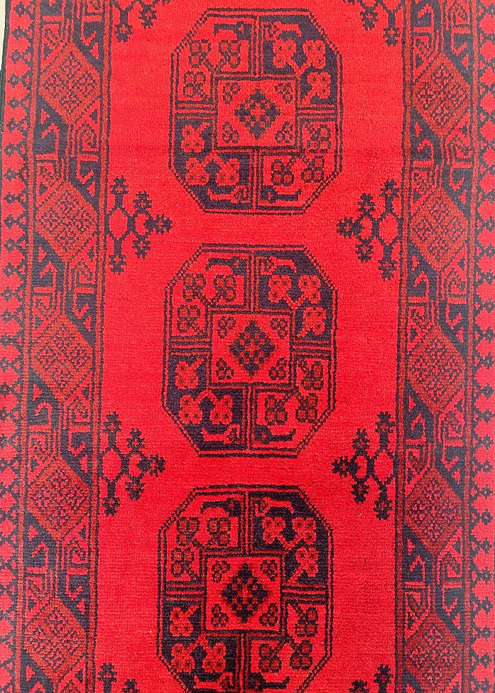 Superb Oversize Handmade Afghan Aqcha Hall Runner. Above All It Has A Pure Hand Spun Wool Pile On Cotton Base. It Has A Deep Red Tone Dyed Using Traditional Methods.