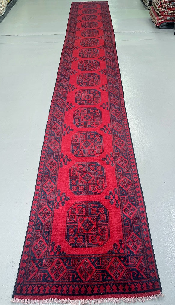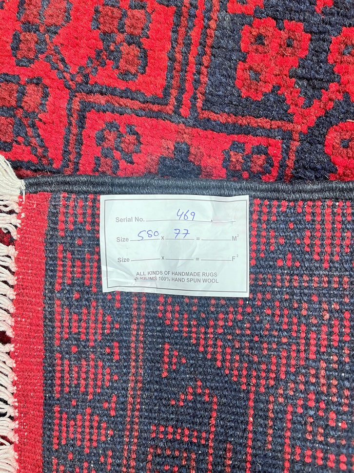 Certified Hand Knotted Afghan Hall Runner 580x77cm