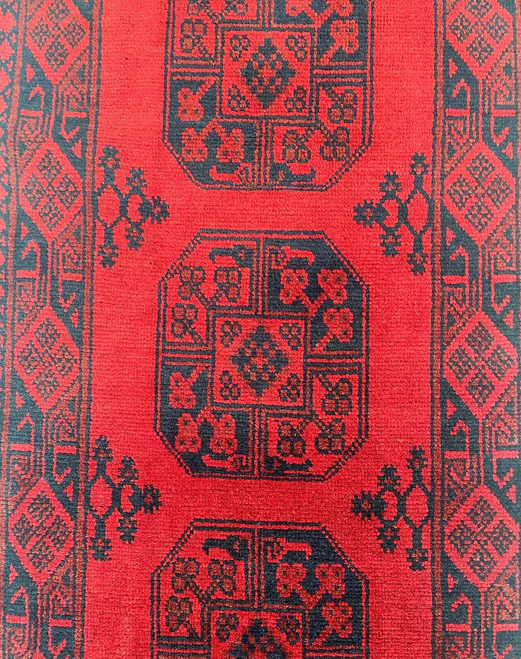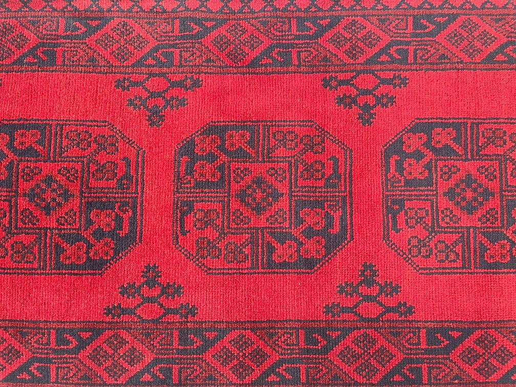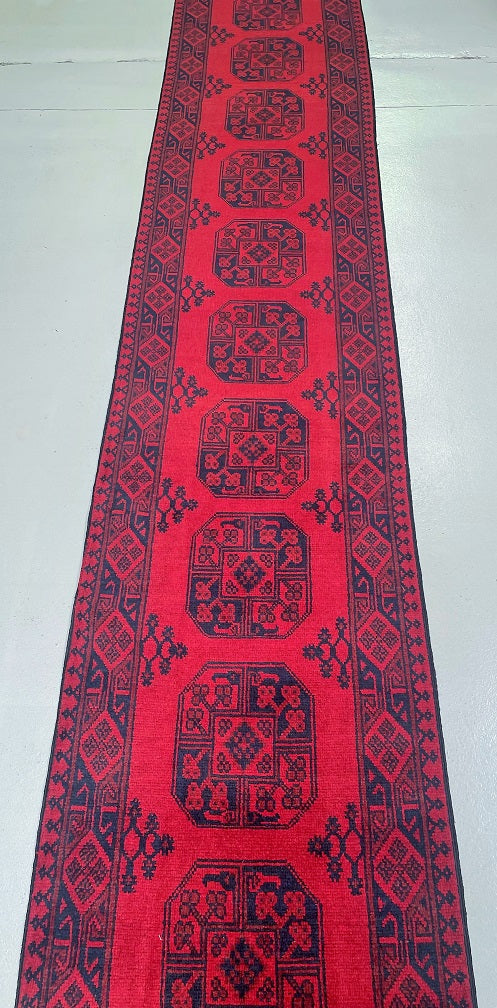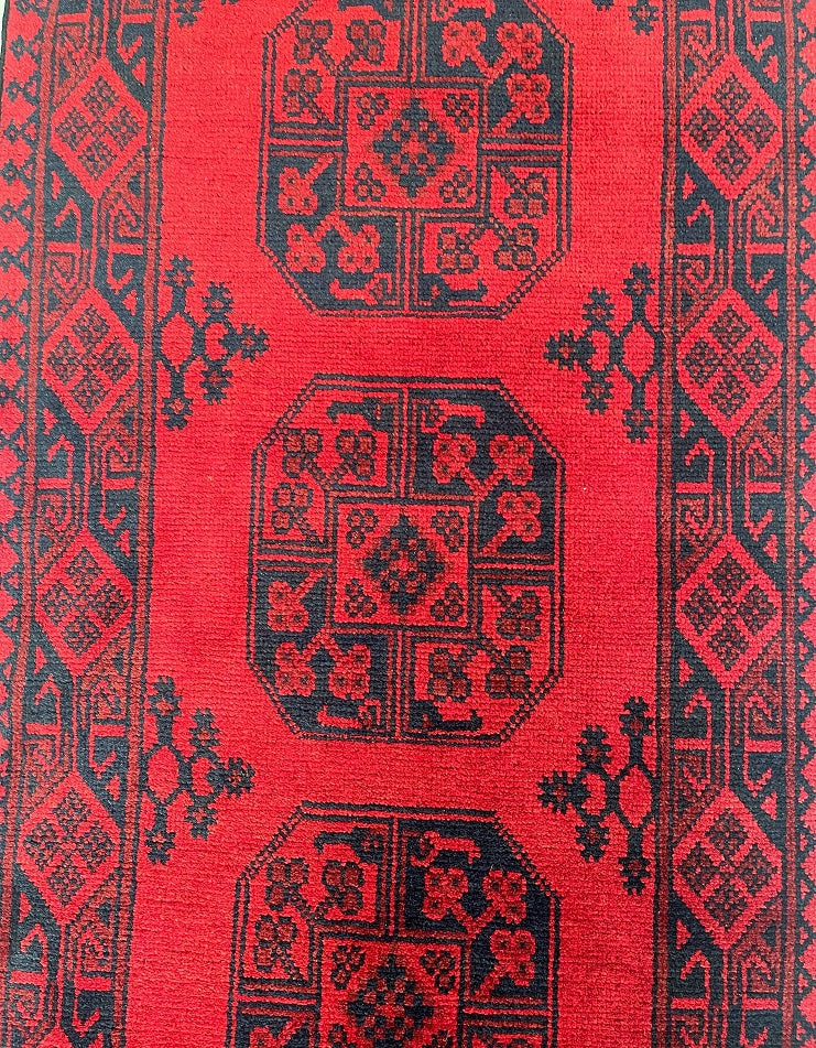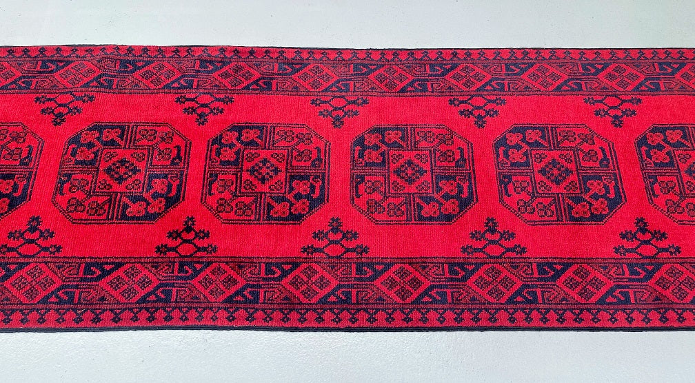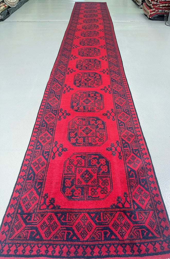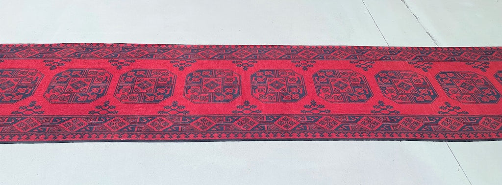 Superb Oversize Handmade Afghan Mazar Hall Runner. Above All It Has A Pure Hand Spun Wool Pile On Cotton Base. It Has A Deep Red Tone Dyed Using Traditional Methods.