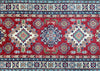 This Oversize Authentic Handmade Afghan Kazak Hall Runner Features A Rich Crimson-Red Field With Bold Geometric Caucasian Medallions In Ivory, Sky Blue, Navy And Soft Sage Tones. The Intricate Tribal Borders In Cream, Blue And Muted Gold Create A Strong Yet Balanced Traditional Look.