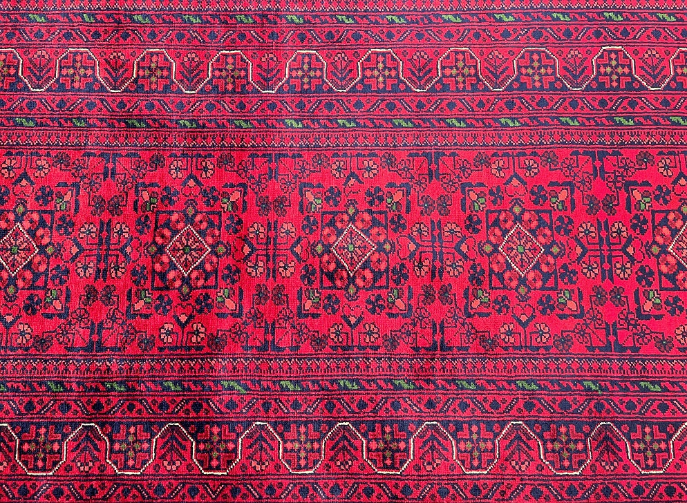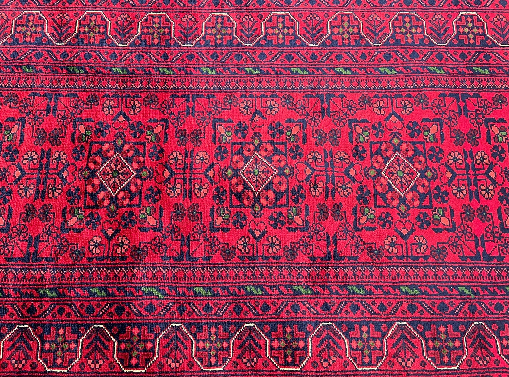 Adorned with a stunning allover broken branches semi-floral, semi-geometric design, this runner is a true testament to the artistry of Afghan craftsmanship. It is worth noting that the weaving process for this masterpiece would have taken a skilled weaver approximately 9 months to complete, showcasing the dedication and skill involved.