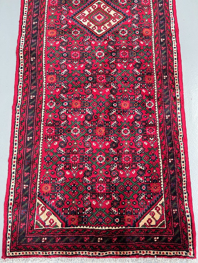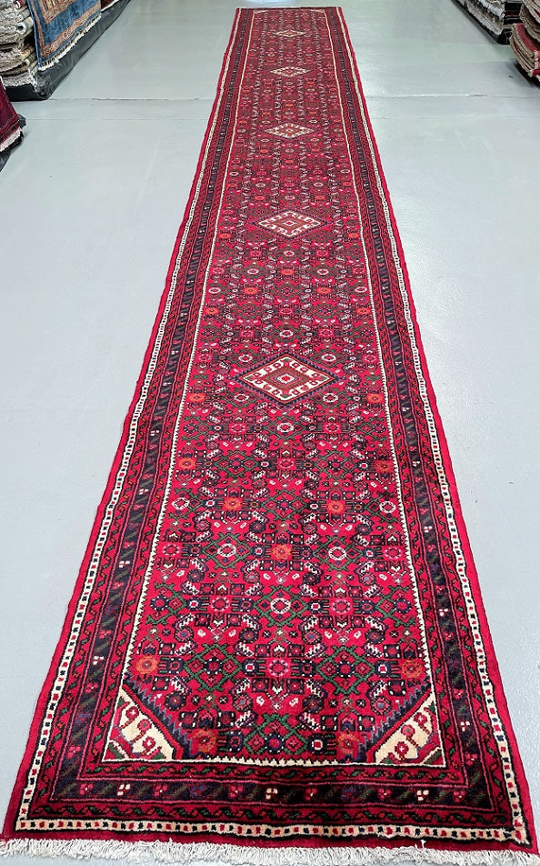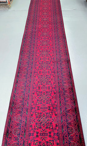 Extra Long Authentic Handmade Persian Enjelas Hall Runner. Above All It Is A Dense Quality Runner. It Also Has Pure Hand Spun Wool Pile On Cotton Base. Red, Beige, Pink, Blue, Green And Orange Tone Dyed Using Traditional Methods.
