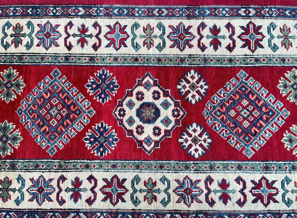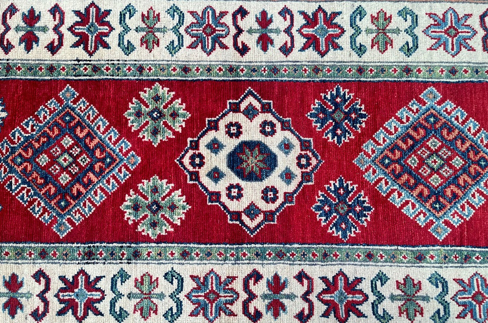 Superb Oversize Authentic Handmade Afghan Kazak Hall Runner. Above All It Has A Pure Hand Spun Wool Pile On Cotton Base. Red, Beige, Blue, Orange, Red And Green Tone Dyed Using Traditional Methods (Vegetable Dyes). Last of True Woven Tribal Art.