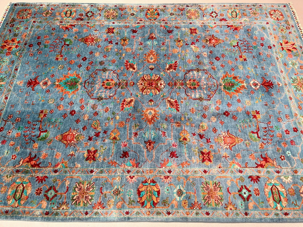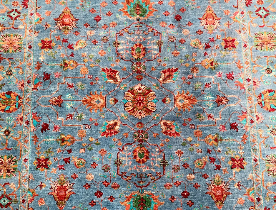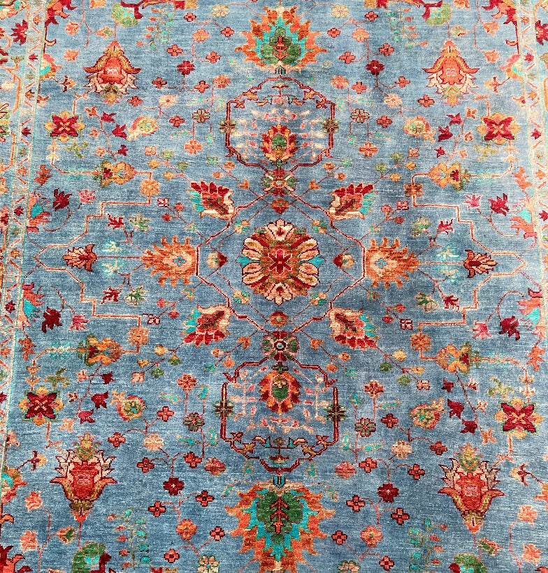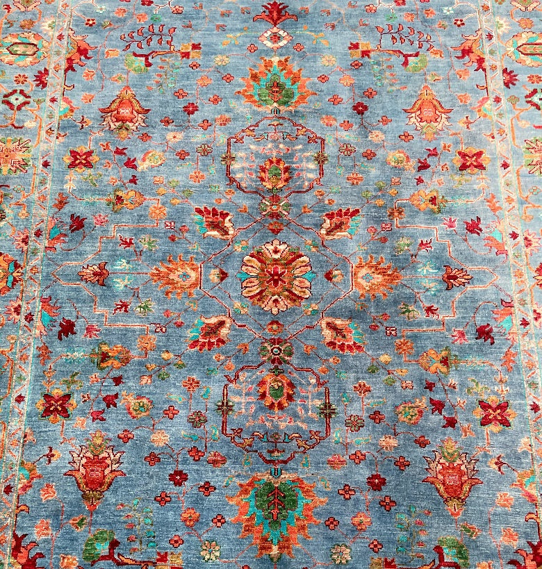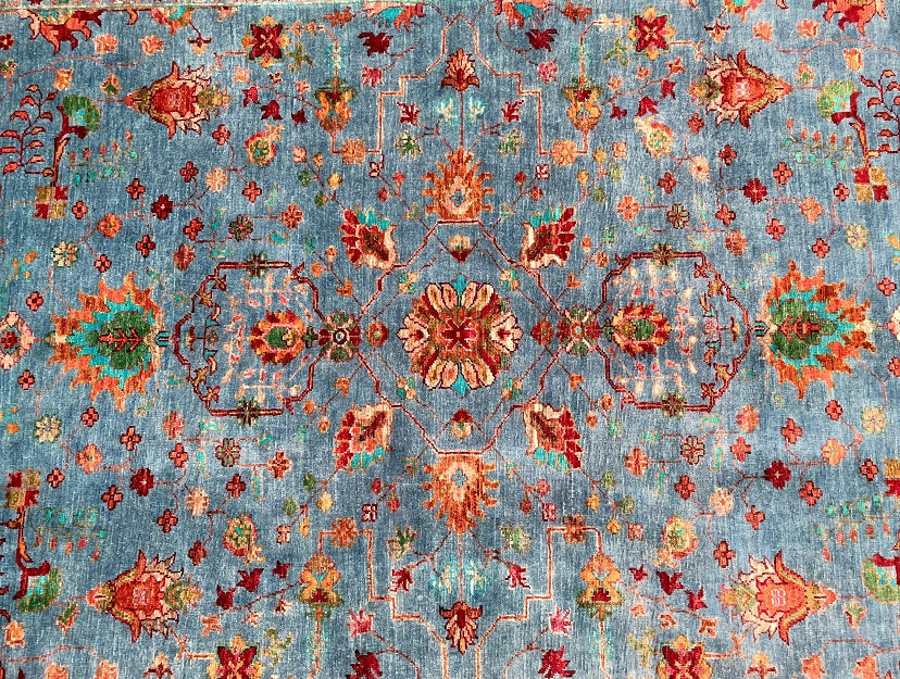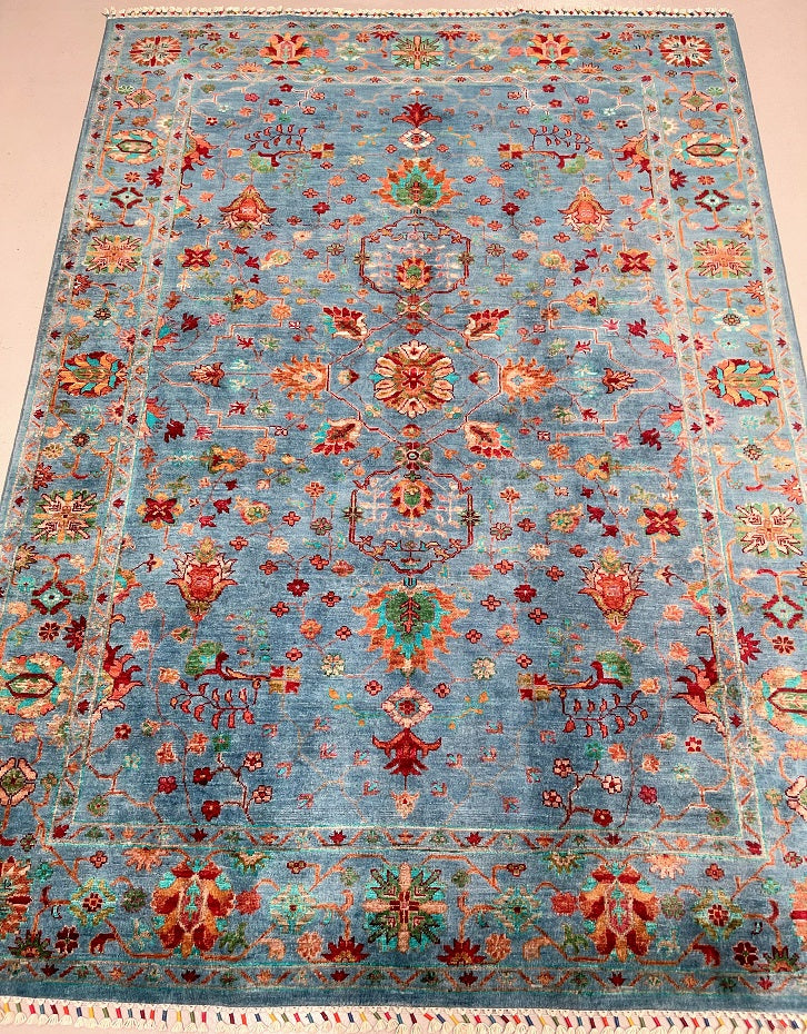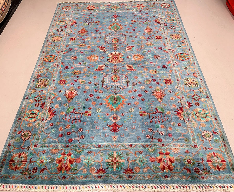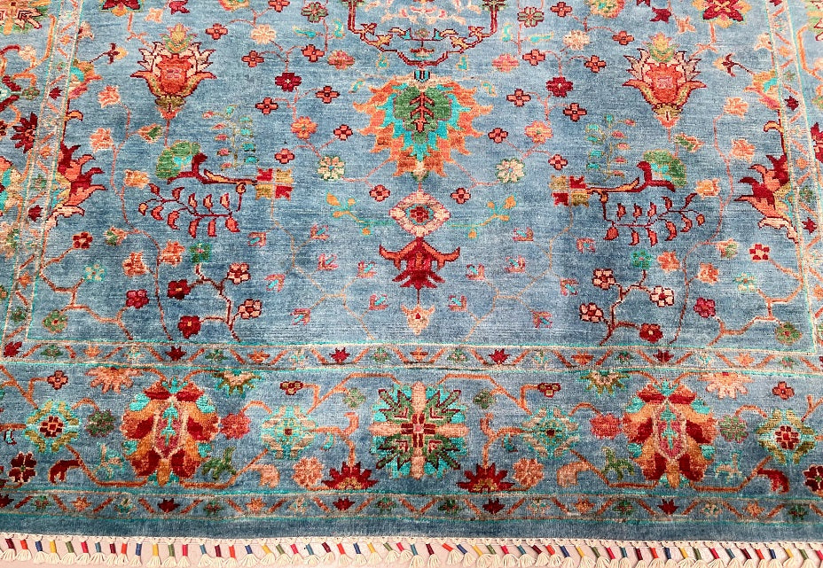 Stunning Room Size Authentic Handmade Afghan Chobi Rug. Above All It Has A Pure Hand Spun Wool Pile On Cotton Base. Light Blue Tone Dyed Using Vegetable Roots. Last Of True Woven Nomadic Art.