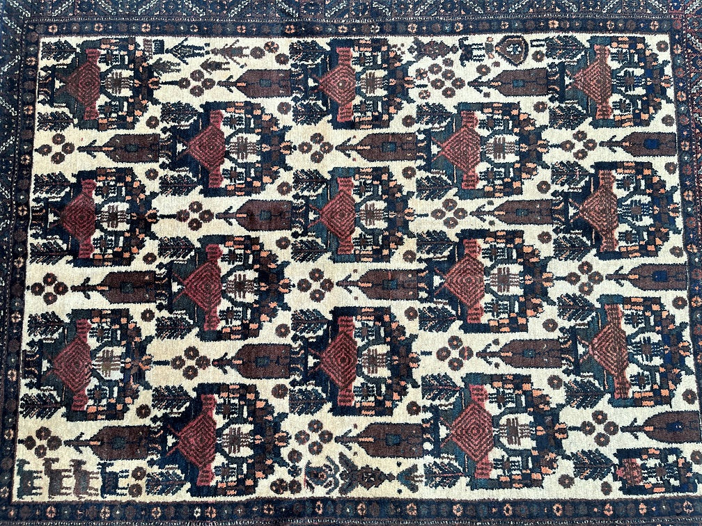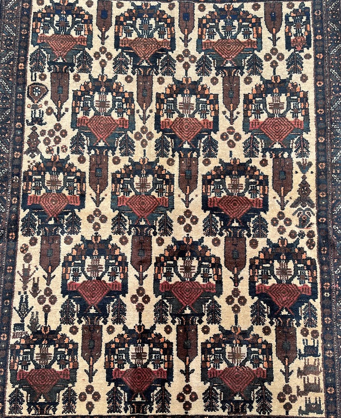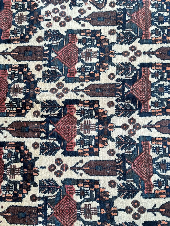 Rare And Collectible Antique Handmade Persian Afshari Rug Circa 1950’s. Pure Hand Spun Wool Pile On Cotton Base. Beige, Blue, Green And Red Tones Dyed Using Traditional Methods.