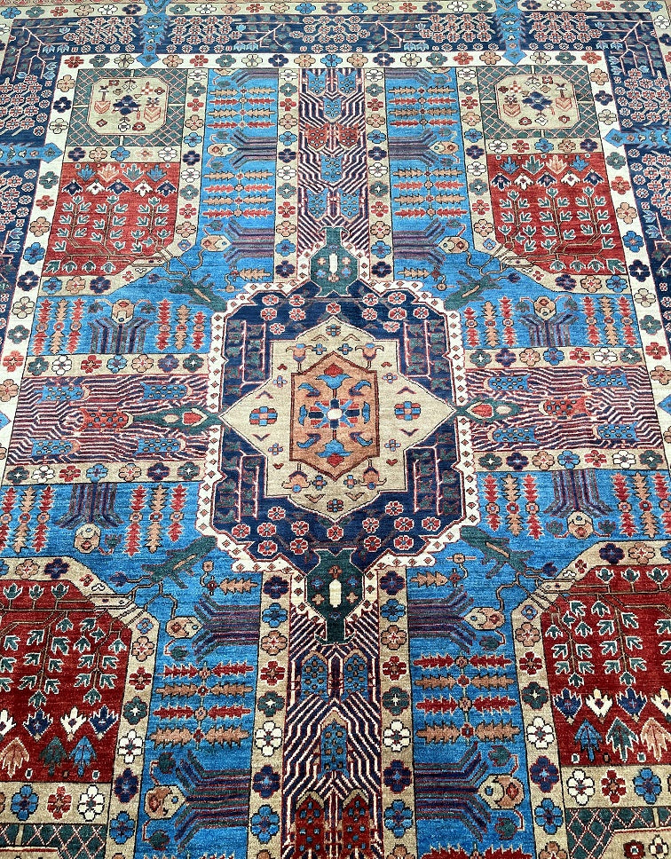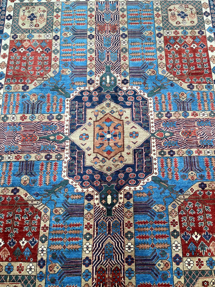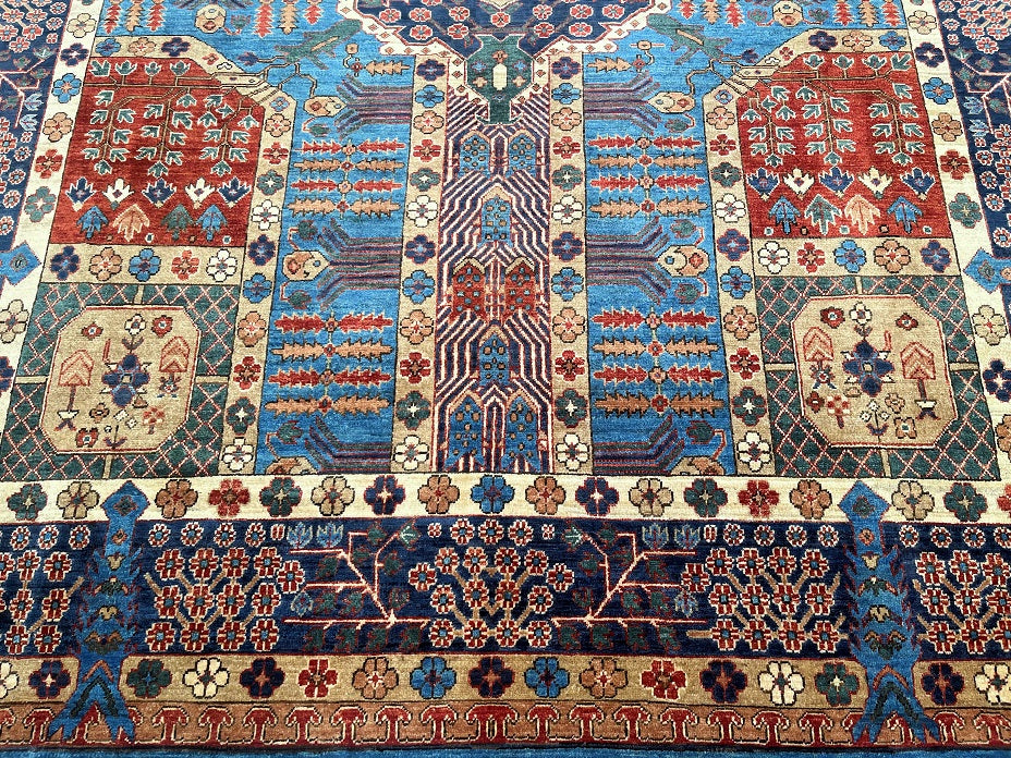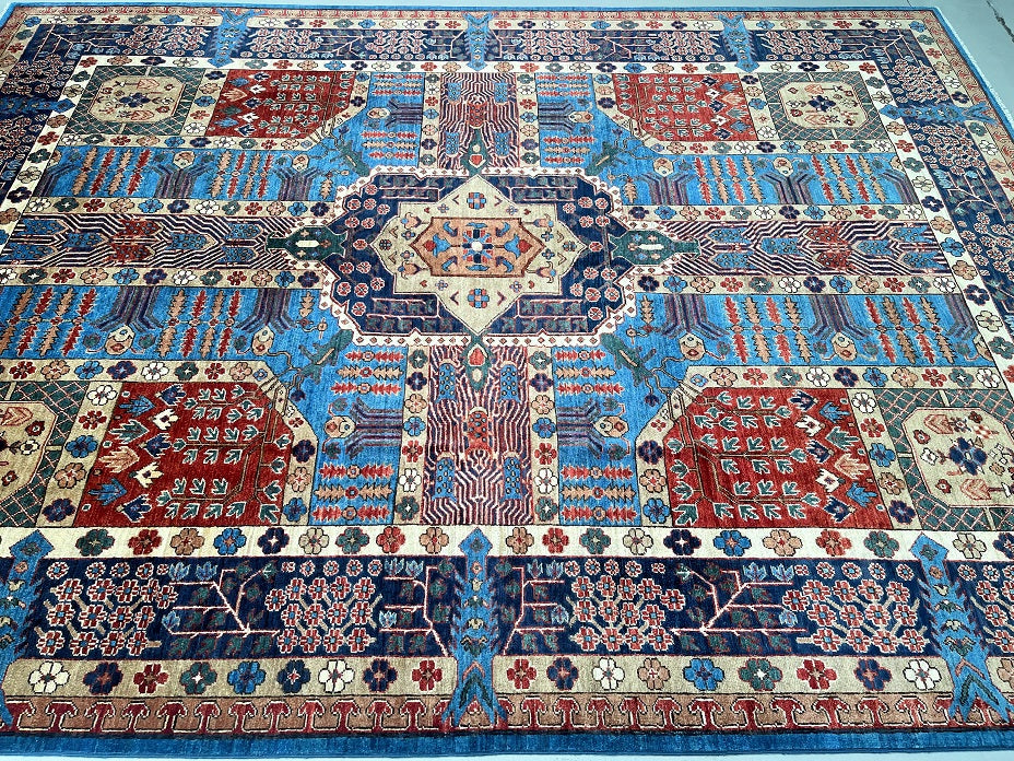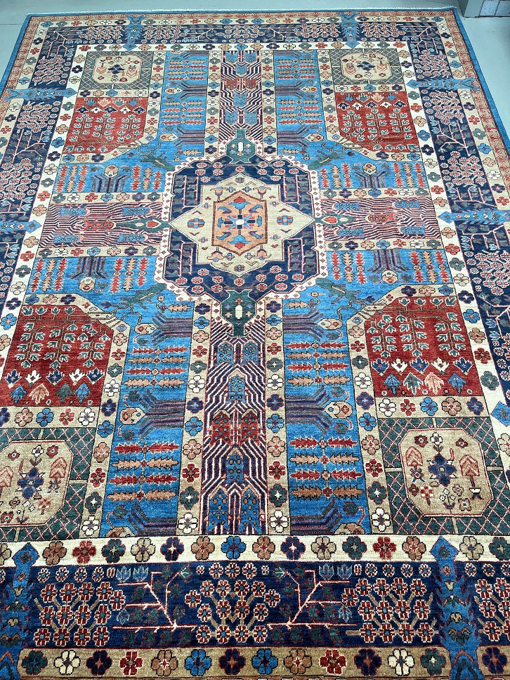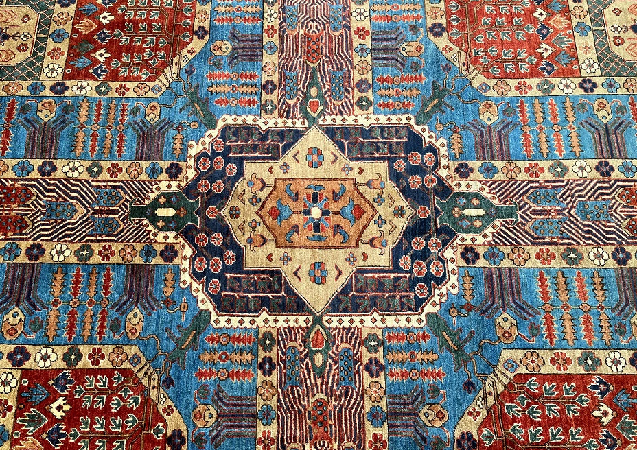 Large Room Size Authentic Handmade Afghan Chobi Serapi rug. Above All It Is Pure Hand Spun Wool Pile On Cotton Base. Gorgeous Blue, Beige, Blue, Green And Maroon Tone Dyed Using Traditional Methods (Vegetable Dyes). Last Of True Woven Tribal Art.