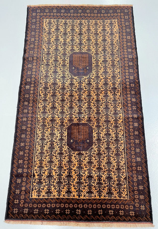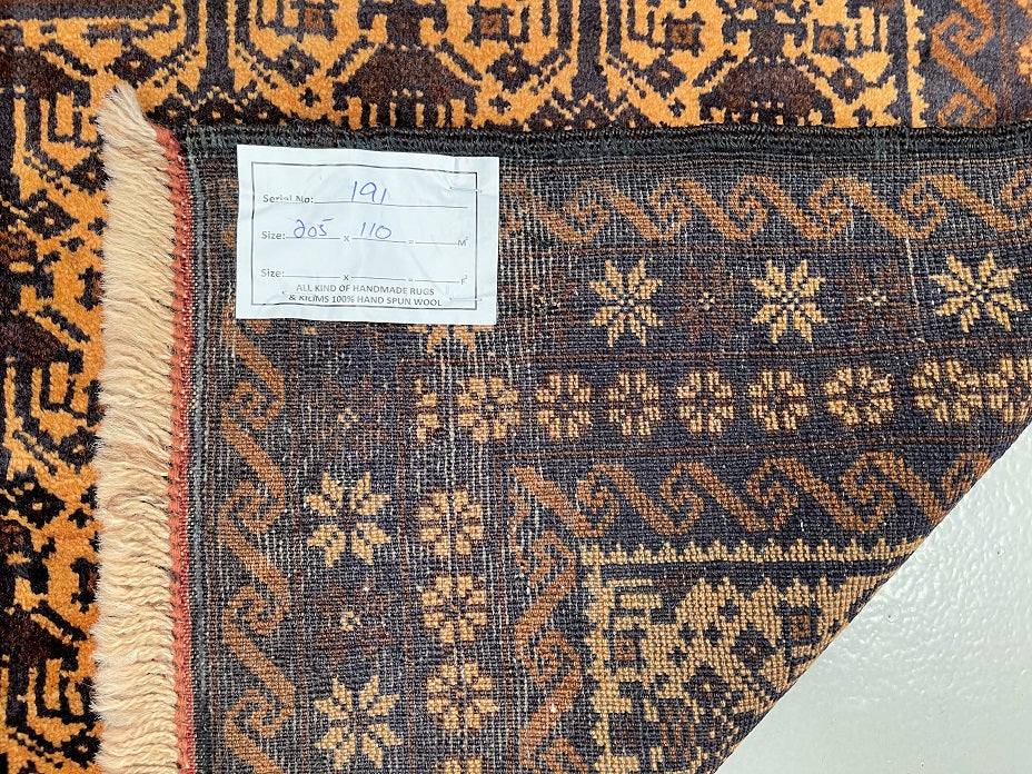 Certified Hand Knotted Afghan Rug 205x110cm