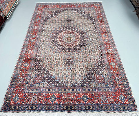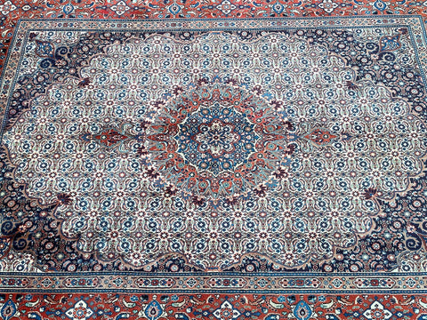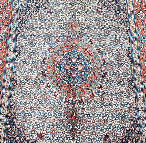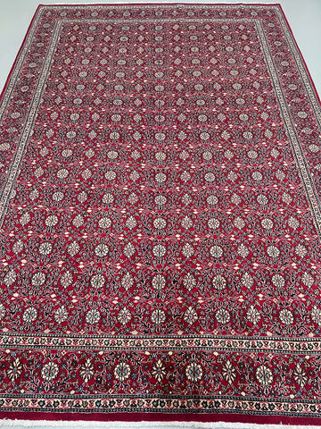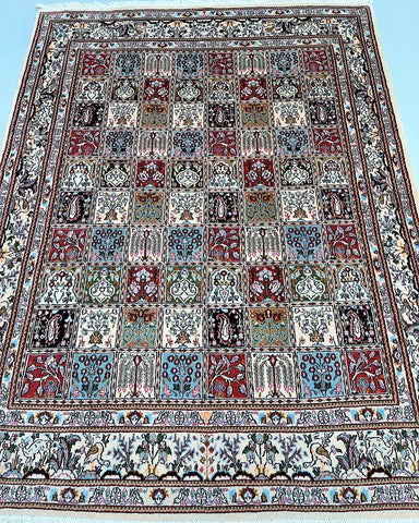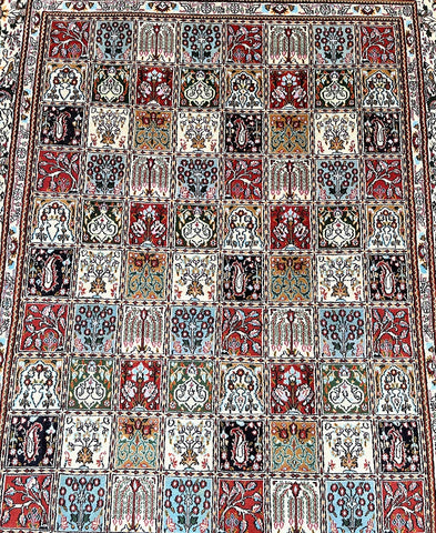 Birjand rugs, woven in eastern Iran since the 16th century, are celebrated for their intricate craftsmanship and timeless Persian designs. The famous Herati pattern—featuring diamond medallions, floral motifs, and refined borders—brings sophistication and harmony to any space, while the garden designs beautifully capture the essence of Persian gardens with vibrant flowers and flowing landscapes. Handwoven from premium wool and silk with exceptional attention to detail, Birjand rugs are known for their clarity, durability, and rich colours, making them true heirloom pieces built to last generations
