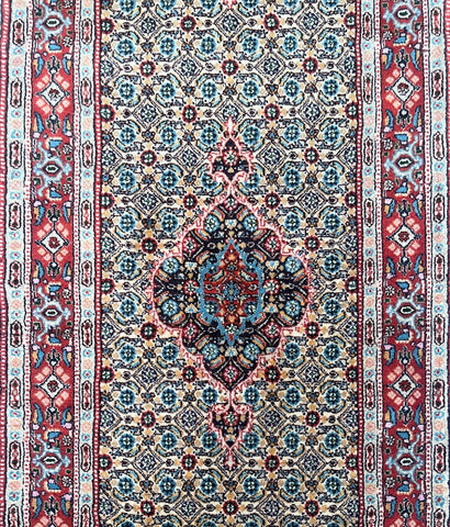 Massive Room Size Authentic Handmade Mood Birjand Rug, Hard To Find This Quality Hand Made In Larger Sizes. It Also Has A Pure Lamb’s Wool Pile On Fine Cotton. Beige, Brown, Caramel And Blue Tone Dyed Using Traditional Methods.