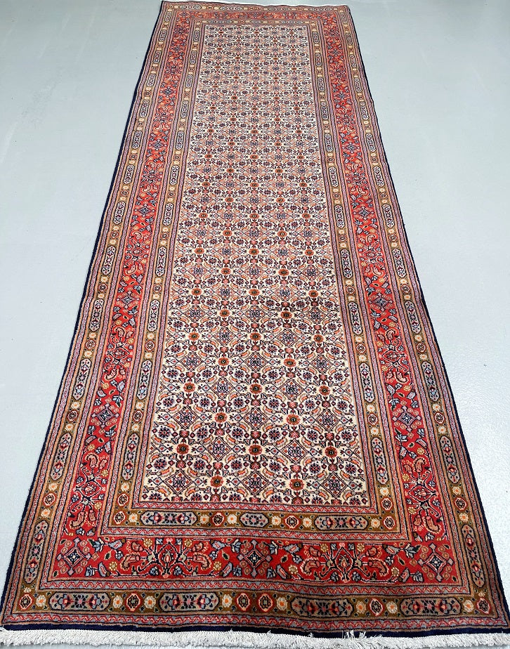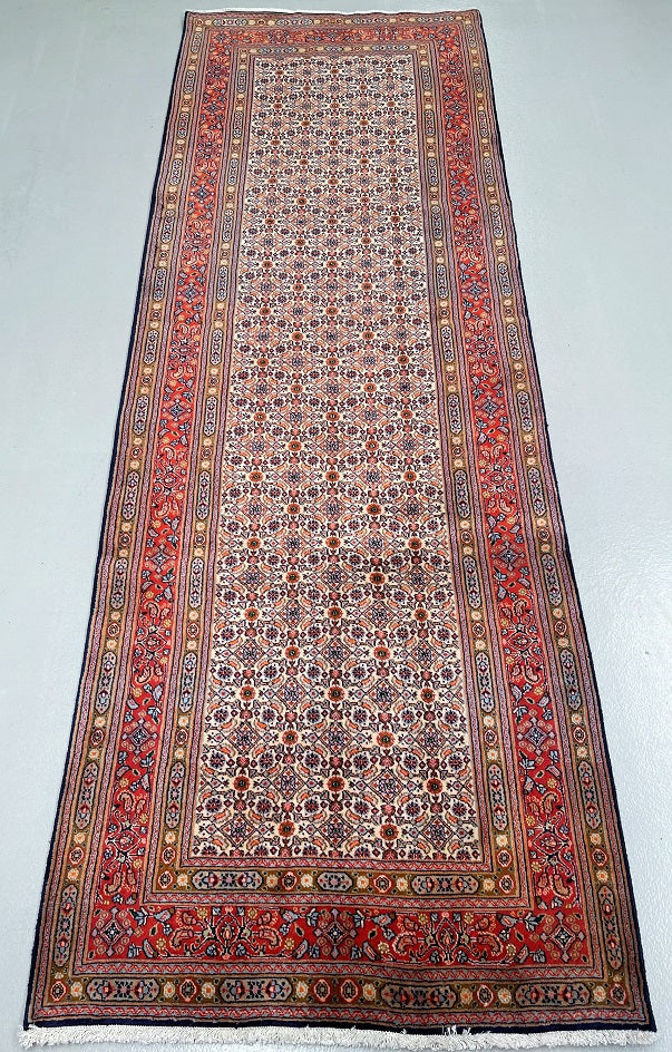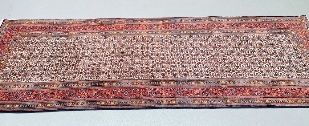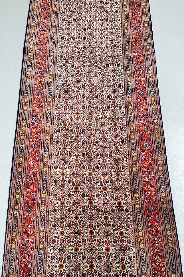 Superb Authentic Handmade Persian Birjand Hall Runner. Above All It Has A Wool And Touch Of Silk Pile on Fine Cotton Base. It Also Has A Beige, Blue, Terracotta, Orange, Aqua And Pink Tones Dyed Using Traditional Methods.