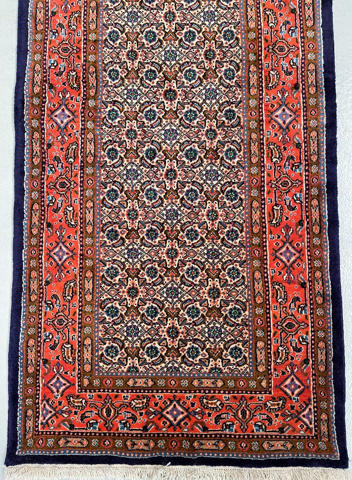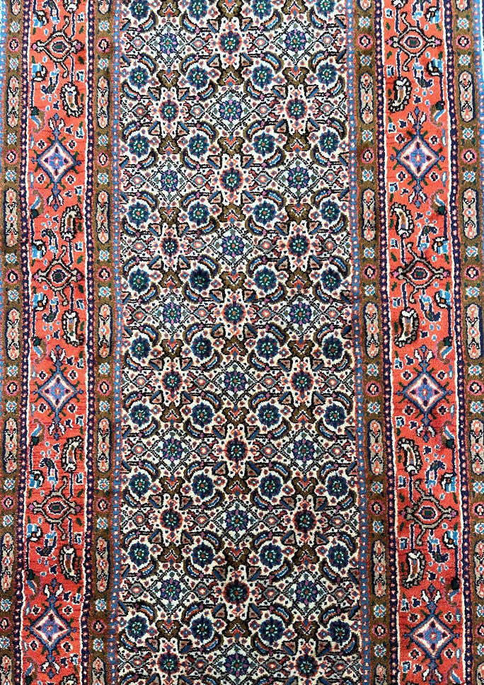 Fine Authentic Handmade Persian Birjand Hall Runner. Above All It Has A Lamb’s Wool Pile On Fine Cotton Base. It Also Has A Beige, Pink, Green, Brown, Orange And Blue Tones Dyed Using Traditional Methods.