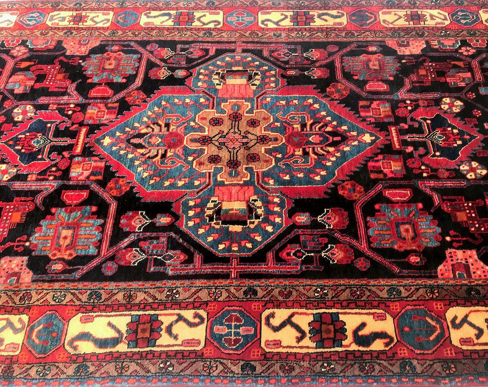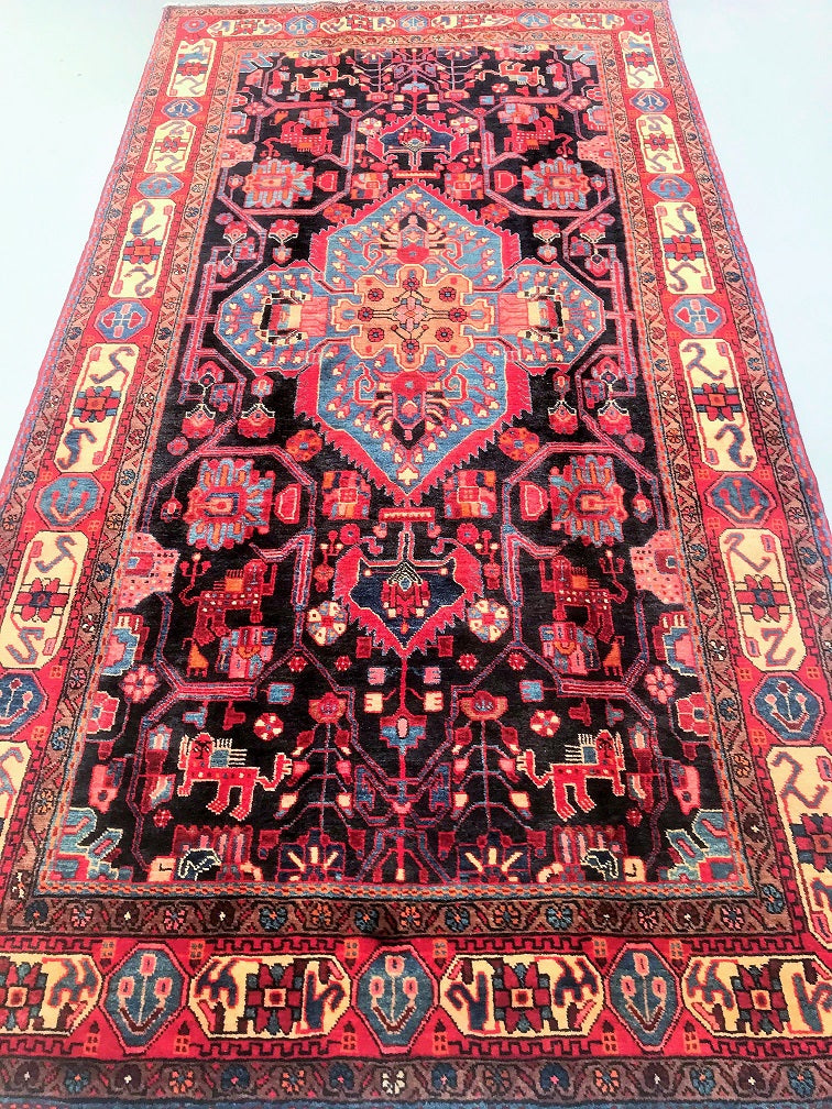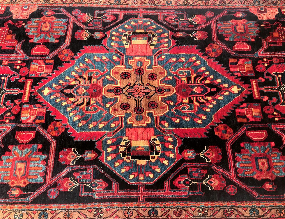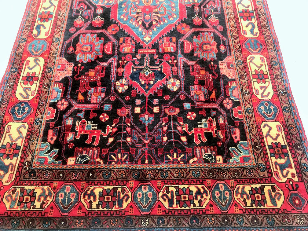 Full Room Size Hand Knotted Tribal Persian Tuserkan Rug. Above All It Is Hard To Find This Quality Handmade Tribal Pieces. Pure Hand Spun Wool Pile On Cotton Base. It Also Has A Deep Indigo Blue Tone Dyed Using Traditional Methods.