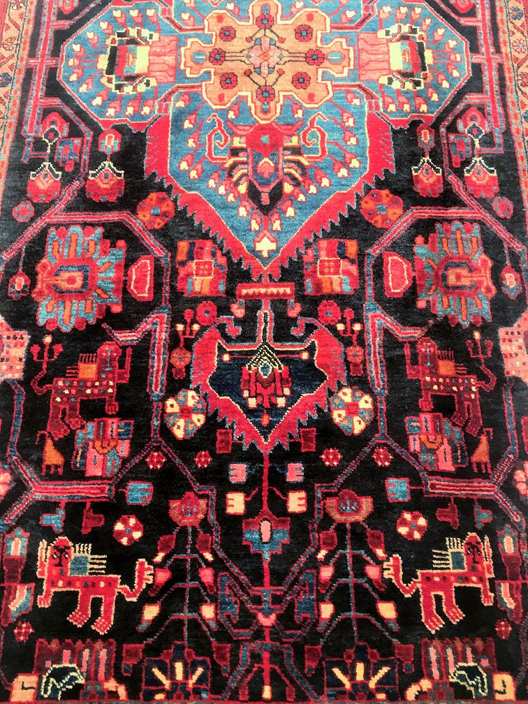 Broken Branches Central Medallion Design with Animal Motives. The Design Comes from Imagination of the Weaver (Not Woven from a Drawing) and it’s one off Tribal Art Work.