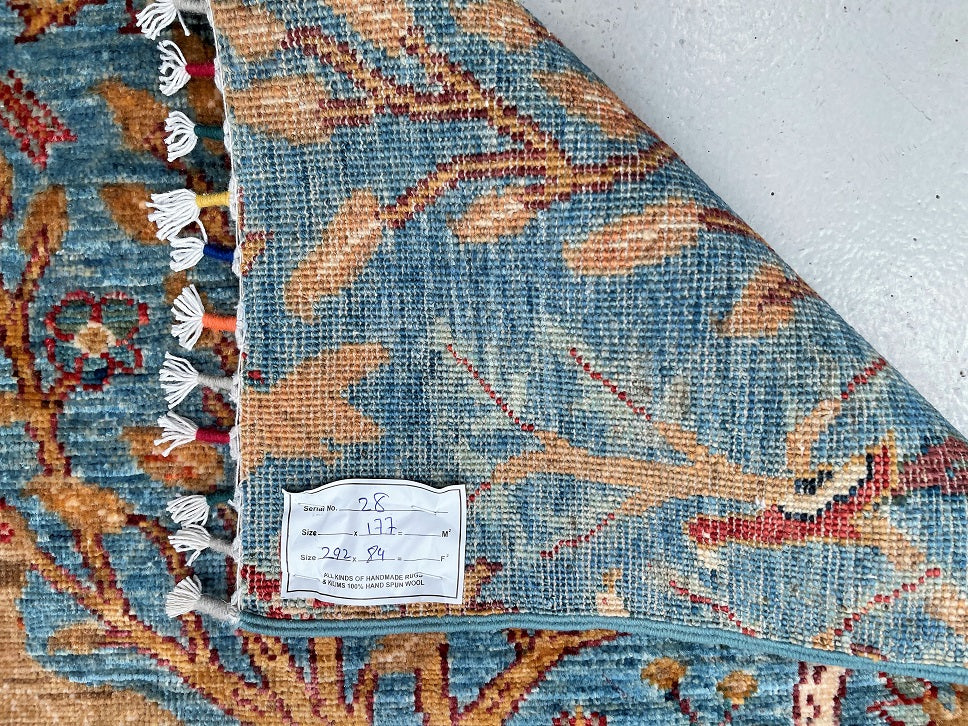Certified Hand Knotted Afghan Hall Runner 292x84cm