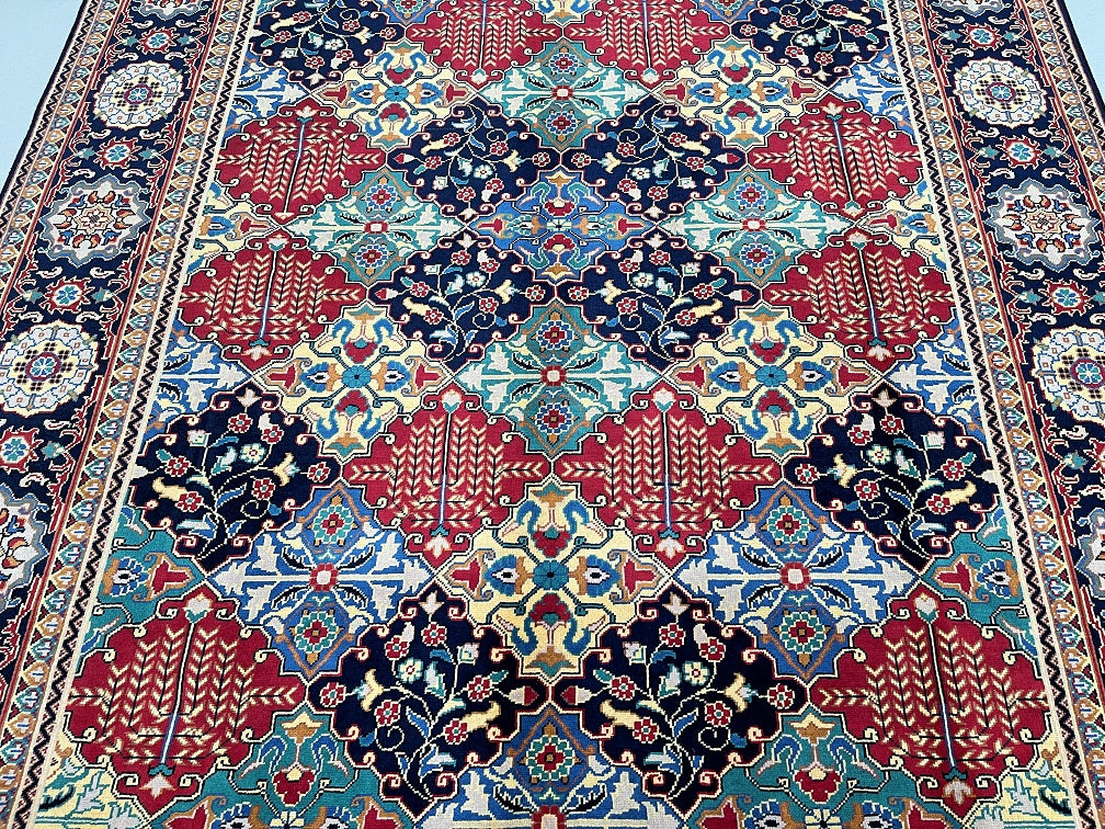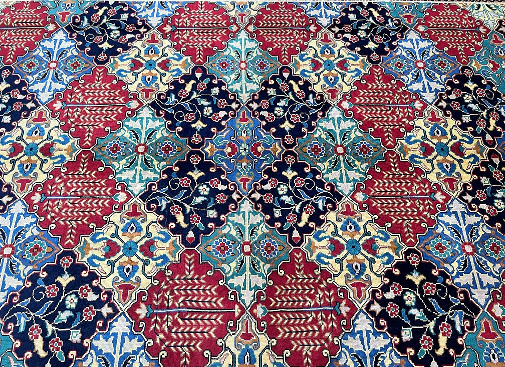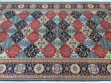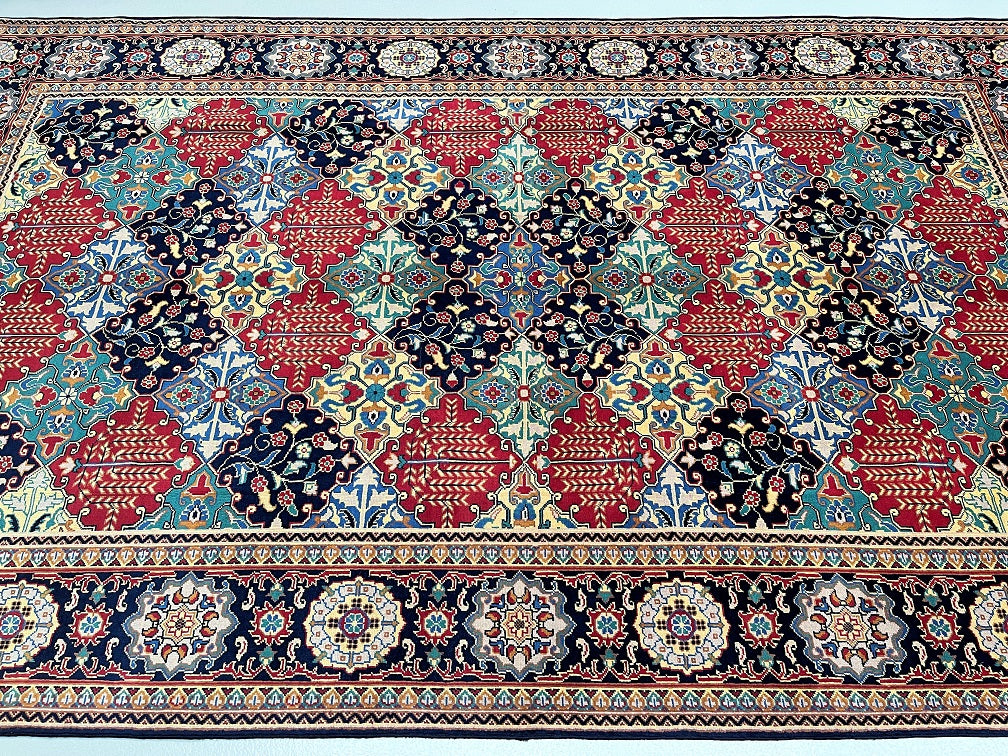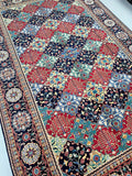 Full Room Size Authentic Hand Knotted Afghan Roshnai Rug. Above All It Is Pure Hand Spun Wool Pile On Cotton Base. Indigo Blue, Beige, Yellow, Maroon And Green Tone Dyed Using Traditional Methods.
