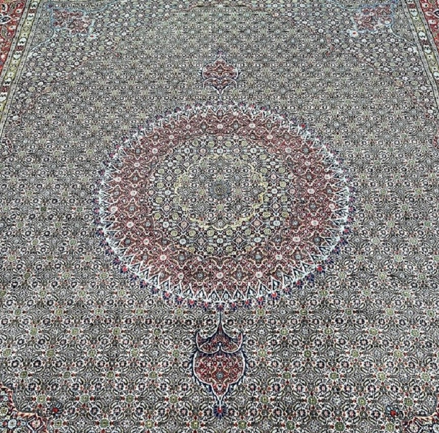 Superb Quality Large Room Size Authentic Handmade Persian Birjand Mood Rug. Above It Has a Lamb’s Wool And Silk Inlaid Pile on Cotton. Vibrant Beige, Yellow, Blue, Red, Green, Orange And Pink Tone Dyed Using Traditional Methods.