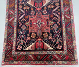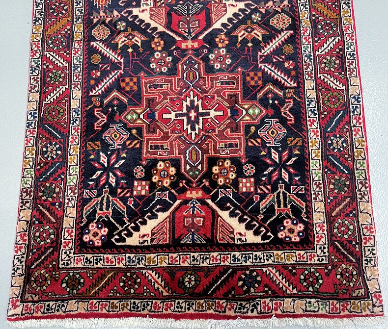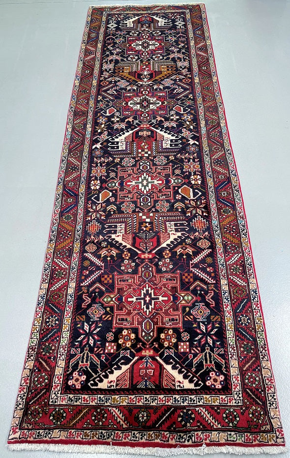 Dense Quality Authentic Handmade Persian Heriz Hall Runner. Above Has A Pure Hand Spun Wool Pile On Cotton Base. Indigo Blue, Beige, Red, Green, Mustard Green, Pink, Orange And Brown Tones Dyed Using Traditional Methods.