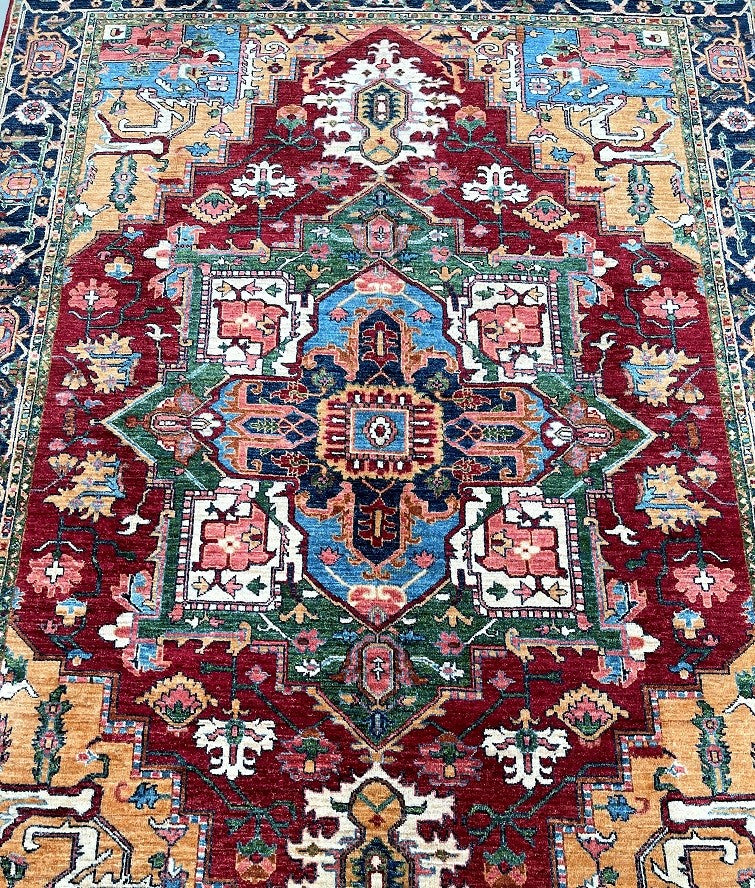 Full Room Size Hand Knotted Afghan Serapi Heriz rug. Above All It Is Pure Hand Spun Wool Pile On Cotton Base. Multi-Colour Tone Dyed Using Traditional Methods (Vegetable Dyes). Last Of True Woven Tribal Art.