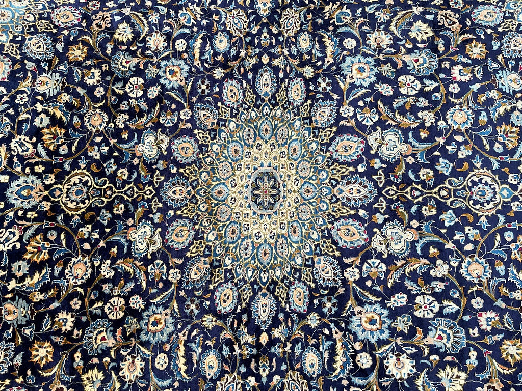 Creating such a masterpiece requires time and expertise, as it would have taken two skilled weavers approximately 12 months to complete this intricate piece. Hand-woven in the esteemed city of Kashmar, located in East Persia, this rug measures an impressive 385 x 300 cm.