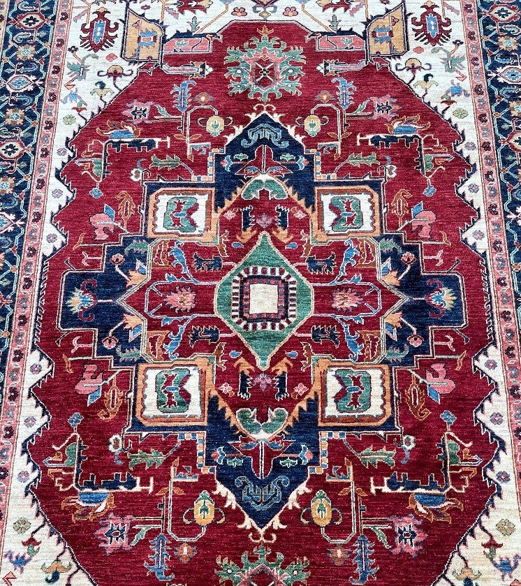 Gorgeous Full Room Size Hand Knotted Afghan Serapi Heriz rug. Above All It Has A Pure Hand Spun Wool Pile On Cotton Base. Multi-Colour Tone Dyed Using Traditional Methods (Vegetable Dyes). Last Of True Woven Tribal Art.