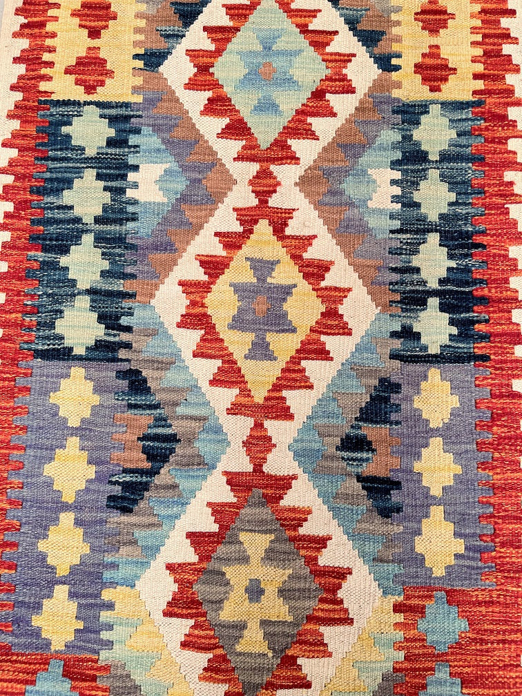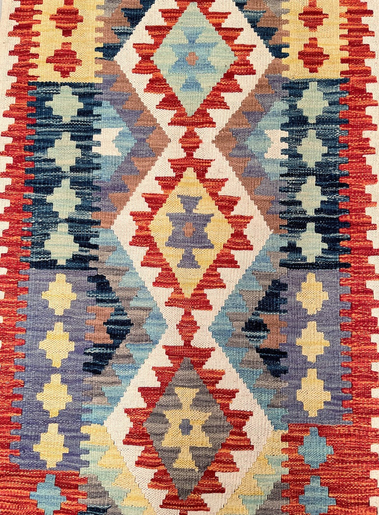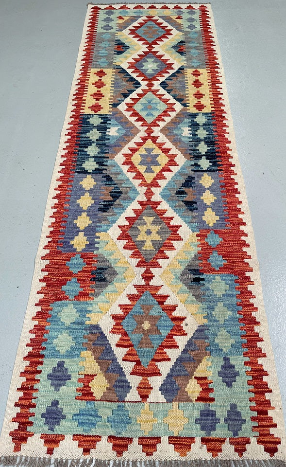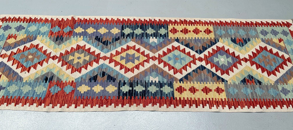 Authentic Hand Woven Afghan Kyber Kilim Hall Runner. Above All It Is Reversible. It Also Has A Pure Hand Spun Wool Pile On Wool Base. Vibrant Tone Dyed Using Vegetable Roots.
