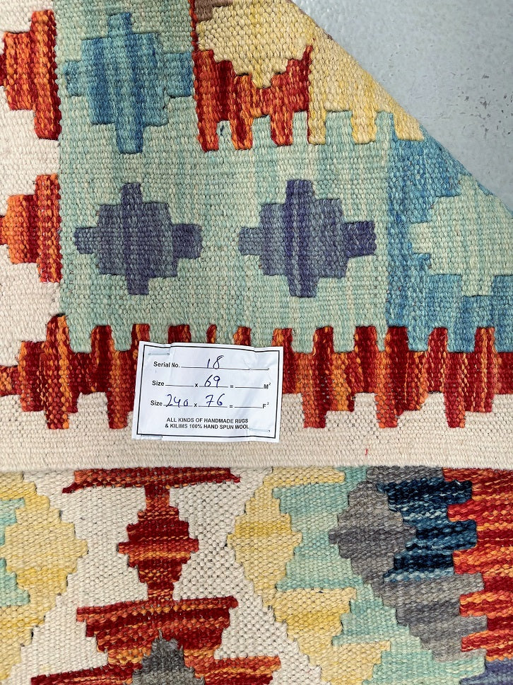 Certified Handmade Afghan Kilim Hall Runner 240x76cm