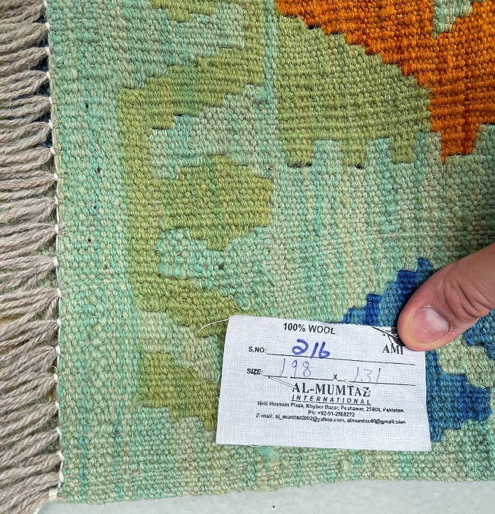 Certified Handmade Afghan Kilim Rug 198x131cm