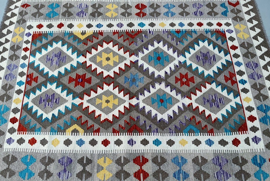 Handmade Boho Design Tribal Afghan Kilim Rug 195x155cm