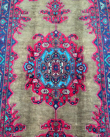 Unique Authentic Handmade Persian Koliai Rug. Above All It Has A Pure Wool Pile On Cotton Base. Pink, Blues, Beige, Red, Green And Brown Tone Dyed Using Traditional Methods.