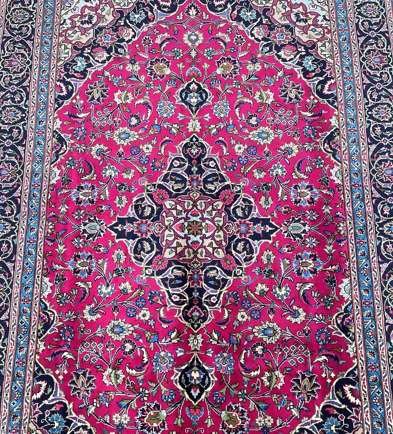 Full Room Size Authentic Handmade Persian Kashmar Rug. Above All It Is Hard To Get This Quality Original Handmade Rug At Such Low Price. Pure Lamb’s Wool Pile on Cotton Base. It Also Has A Magenta Red, Indigo Blue, Beige, Light Blue, Pink, Brown And Green Tone With Hint Of Burgundy Dyed Using Traditional Methods. Dense Quality Piece That Would Last For Many Years to Come/