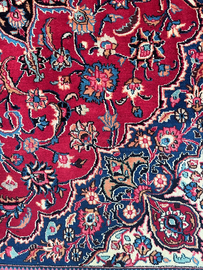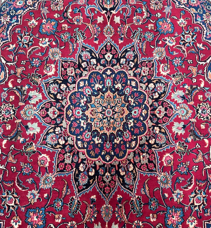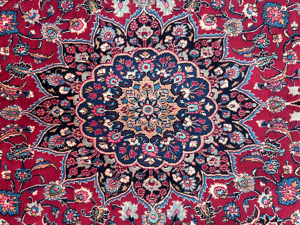 Full Room Size Authentic Handmade Persian Mashad Gonabad Rug. Above all It Is Rare To Get This Quality Handmade Rug From This Town. It Also Has A Dense Lamb’s Wool Pile On Cotton Base. Red, Beige, Black, Pink, Orange And Blue Tone Dyed Using Traditional Methods.
