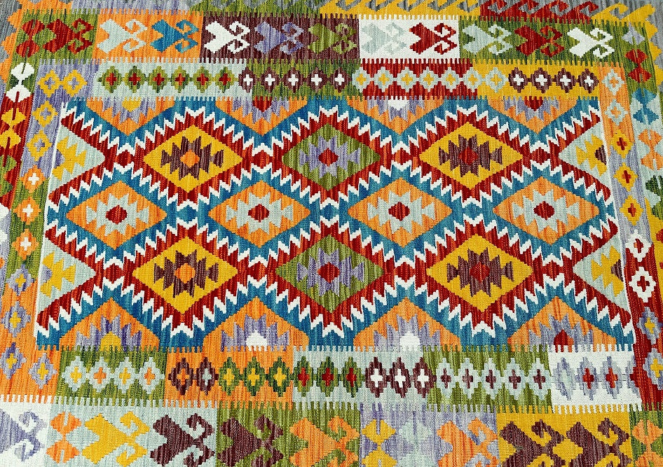 Handmade Boho Design Tribal Afghan Kilim Rug 204x154cm