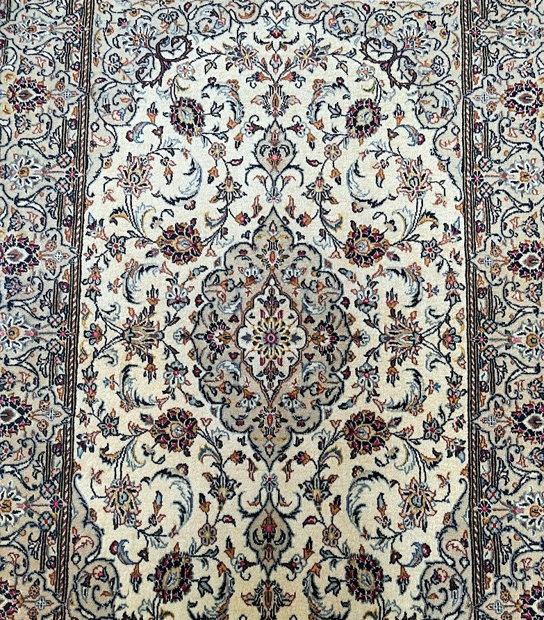 Free Shipping Australia Wide Offered! Certified hand knotted Persian Rug Signed 170x110cm Superb coffee table size authentic Handmade Persian Kashan Rug Signed. It also has a pure lamb’s wool pile on cotton base. Beige/gold, blue, burgundy, yellow...