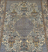 Rare Authentic Handmade Vintage Persian Qum Rug Woven Circa 1960’s. It Also Has A Pure Lamb’s Wool Pile on Cotton Base. Beige, Gold, Brown And Blue Tones Dyed Using Traditional Methods.
