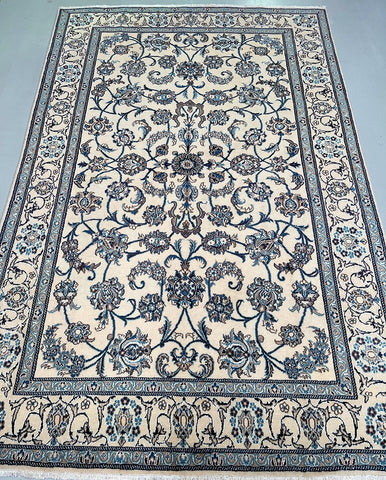 Superb squarish room size authentic handmade Persian Nain rug. Above all it is hard to get this quality original handmade rug in red and beige tone from city of Nain. It has a Lamb’s wool and silk inlaid pile on cotton base. Rare beige, blue, burgundy and brown tones dyed using traditional methods.