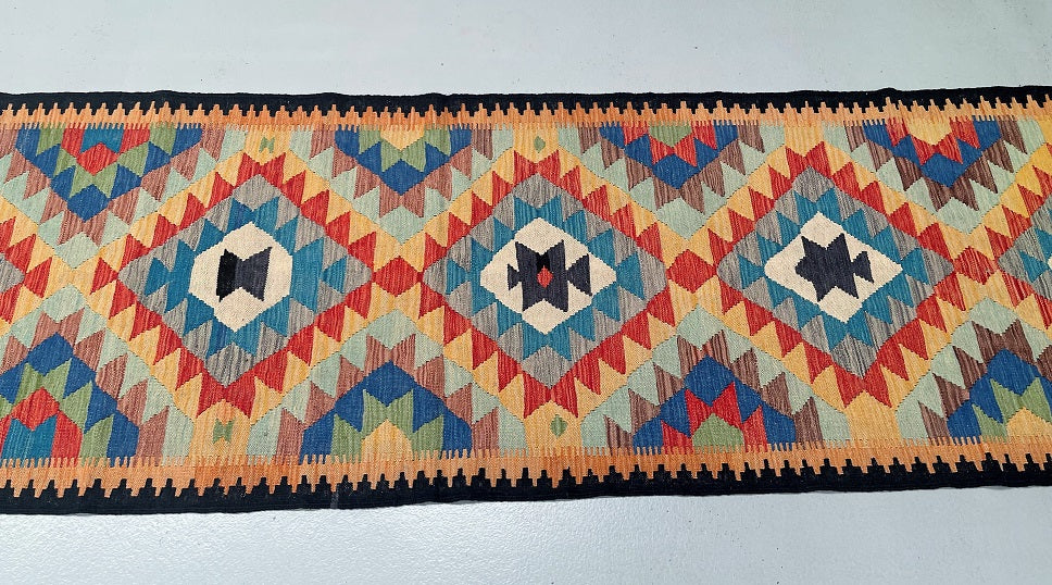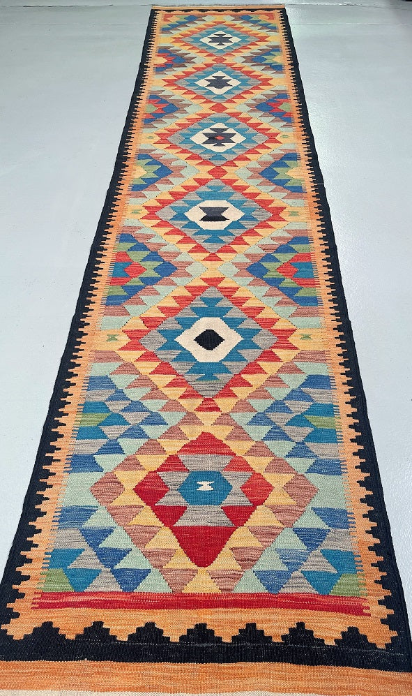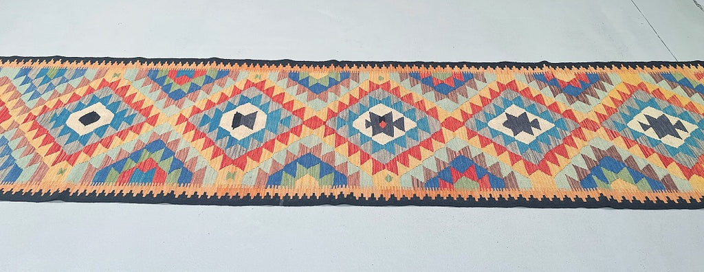 Handmade Afghan Kilim Hall Runner 384x87cm