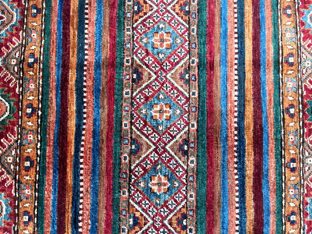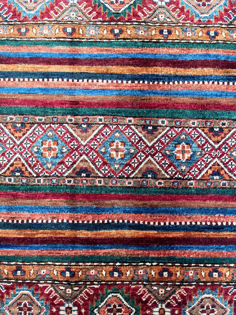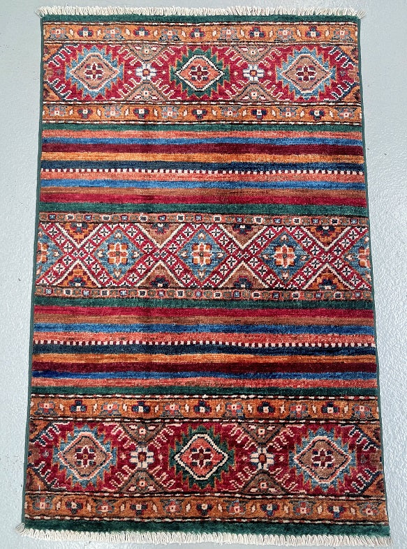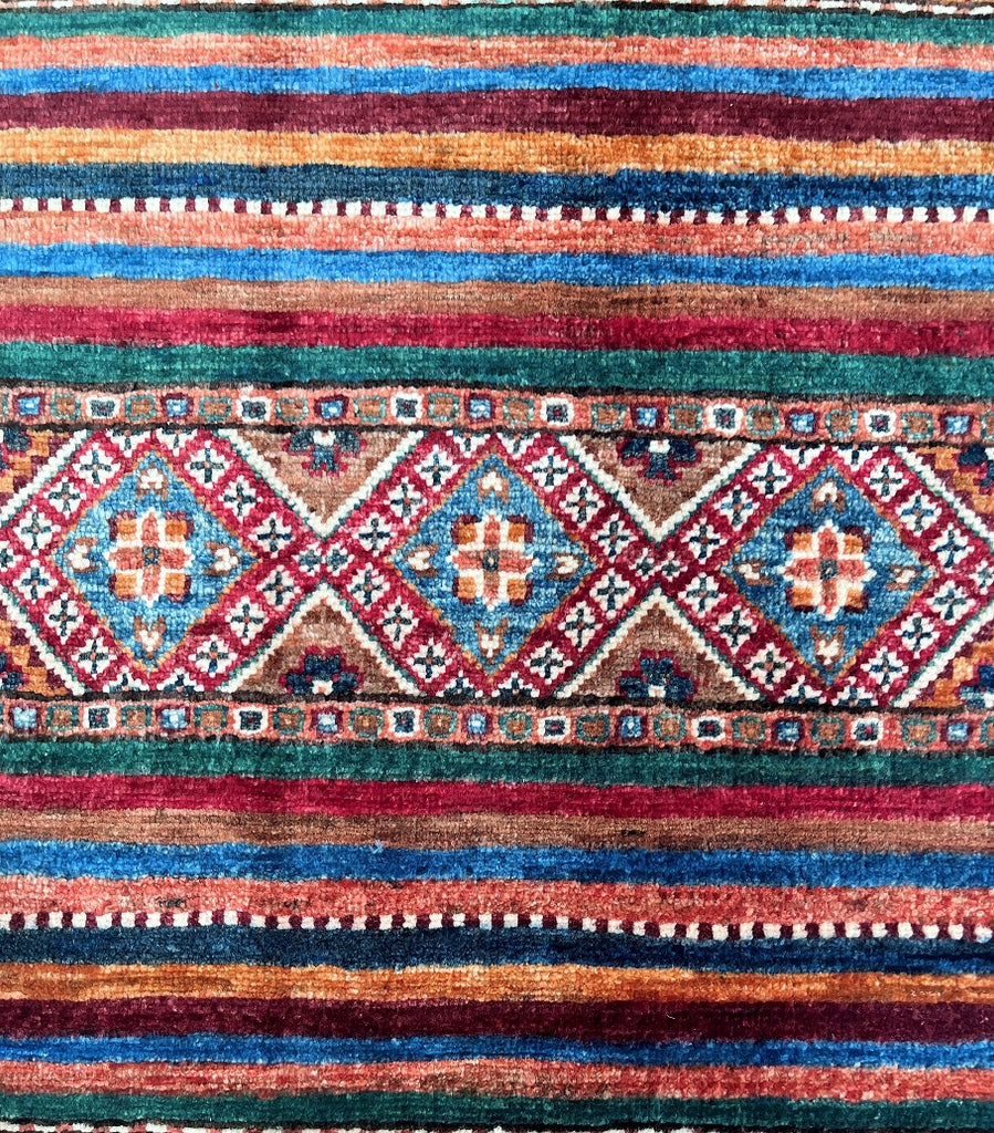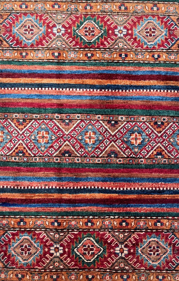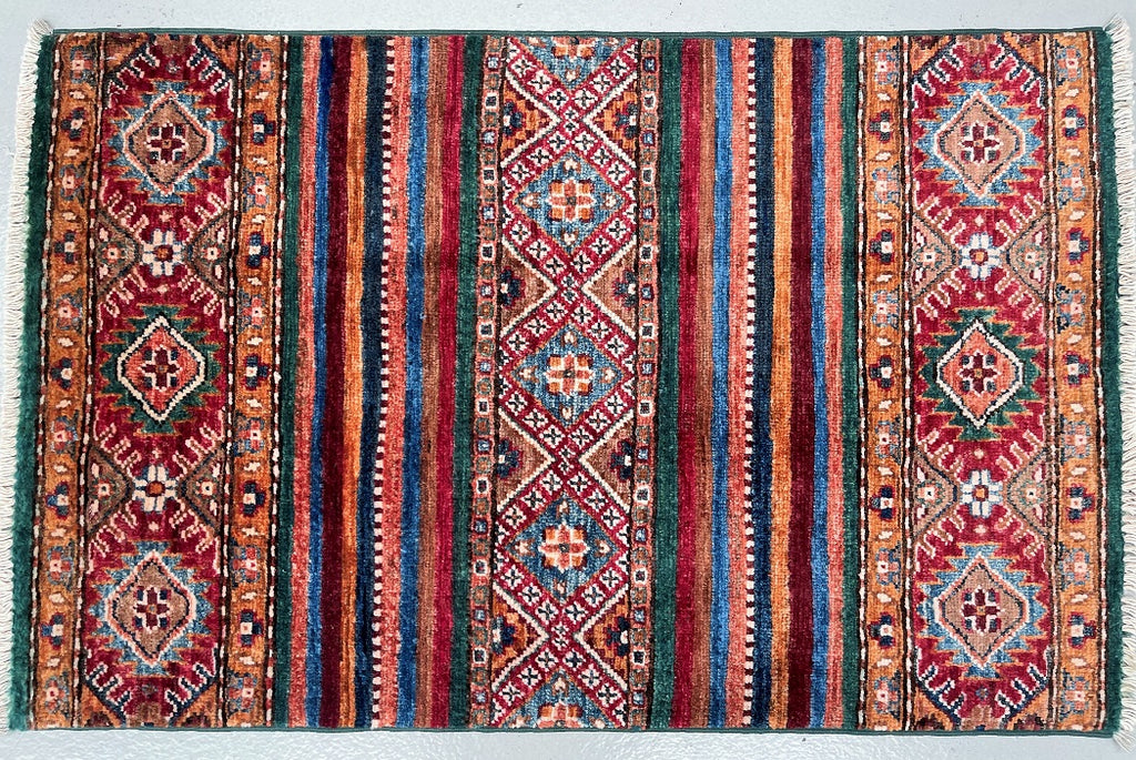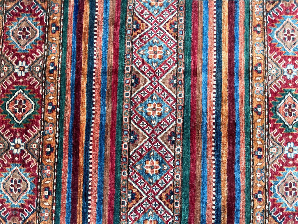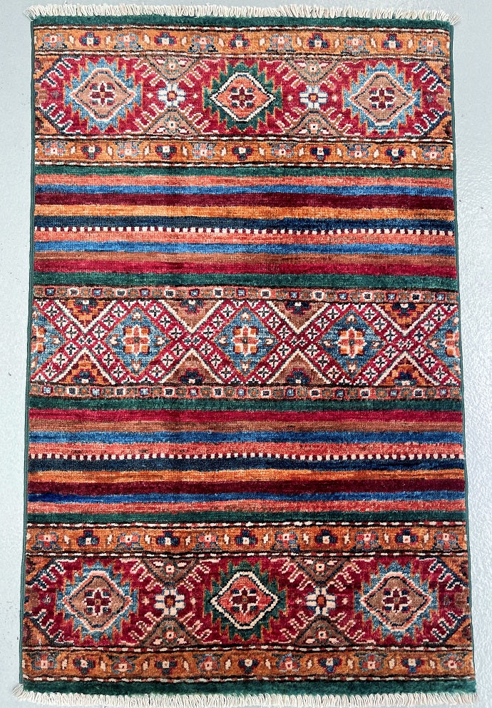 Door Mat Size Hand Knotted Super Kazak Rug. Above All It Is Pure Hand Spun Wool Pile On Cotton Base. Multi Colour Tone Dyed Using Traditional Methods (Vegetable Dyes). Last of True Woven Nomadic Art.