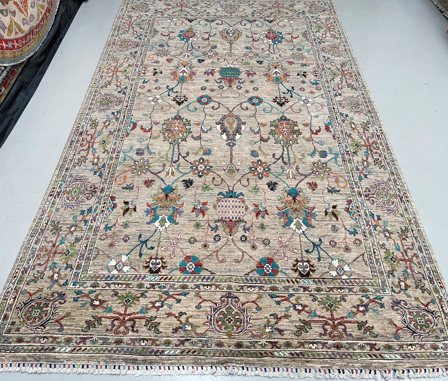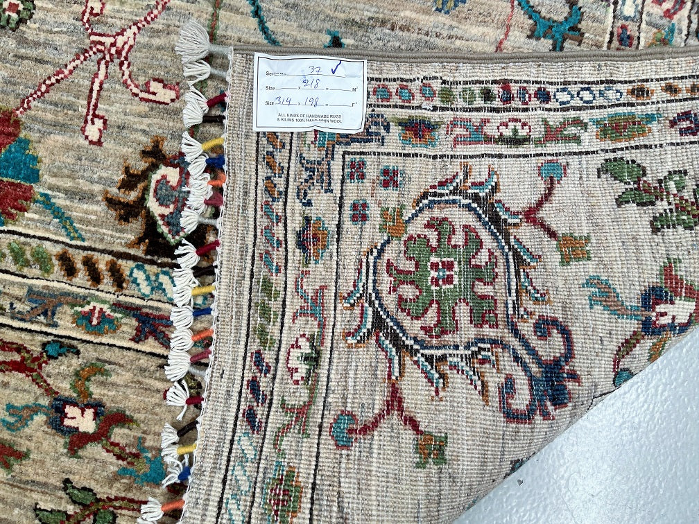 Free Shipping Australia Wide Offered! Certified Handmade Afghan Rug 314x198cm Superb Full Room Size Hand Knotted Sultani Afghan Chobi Rug. Above All It Has A Pure Lamb’s Wool Pile On Cotton Base. Soft Light Brown-Grey Field With Light Beige Undert...
