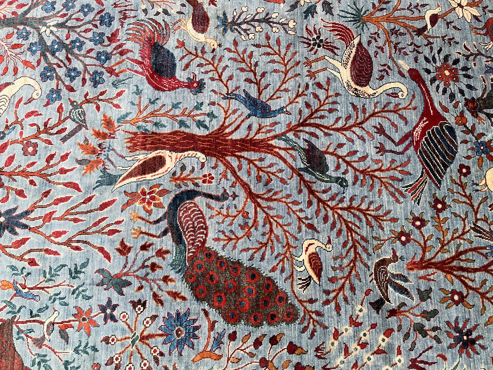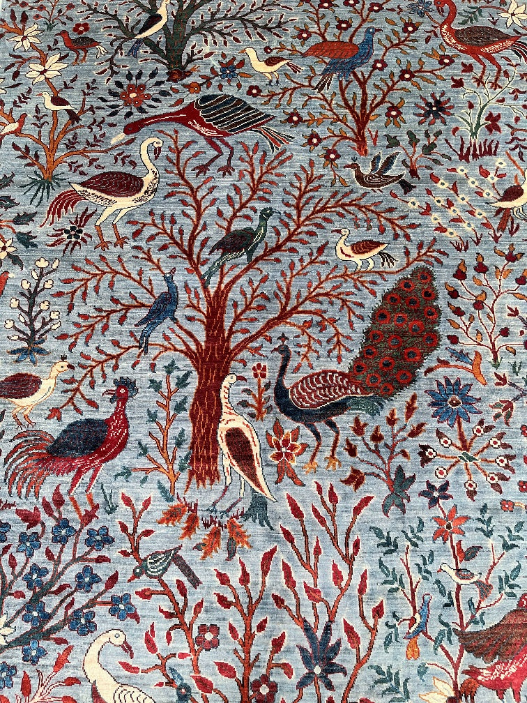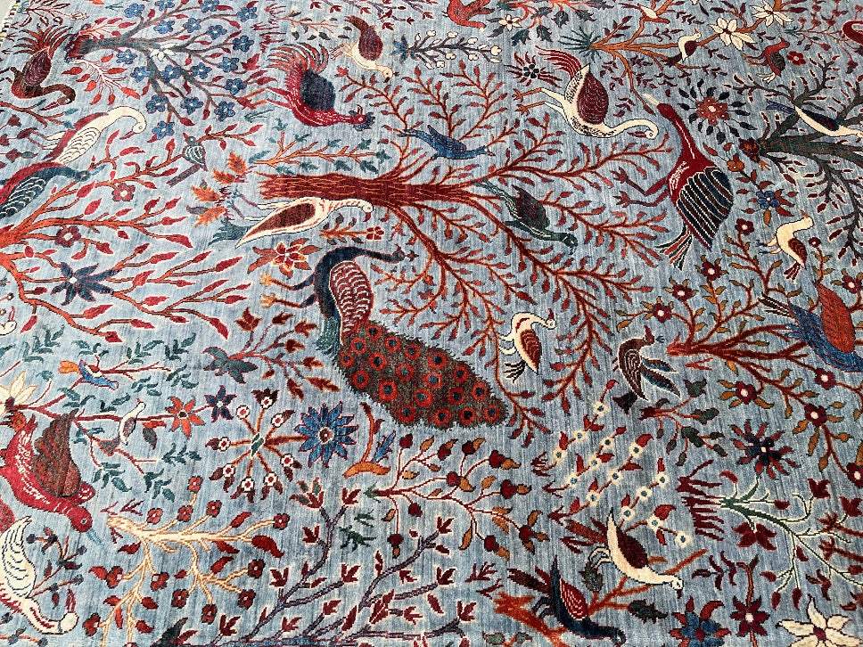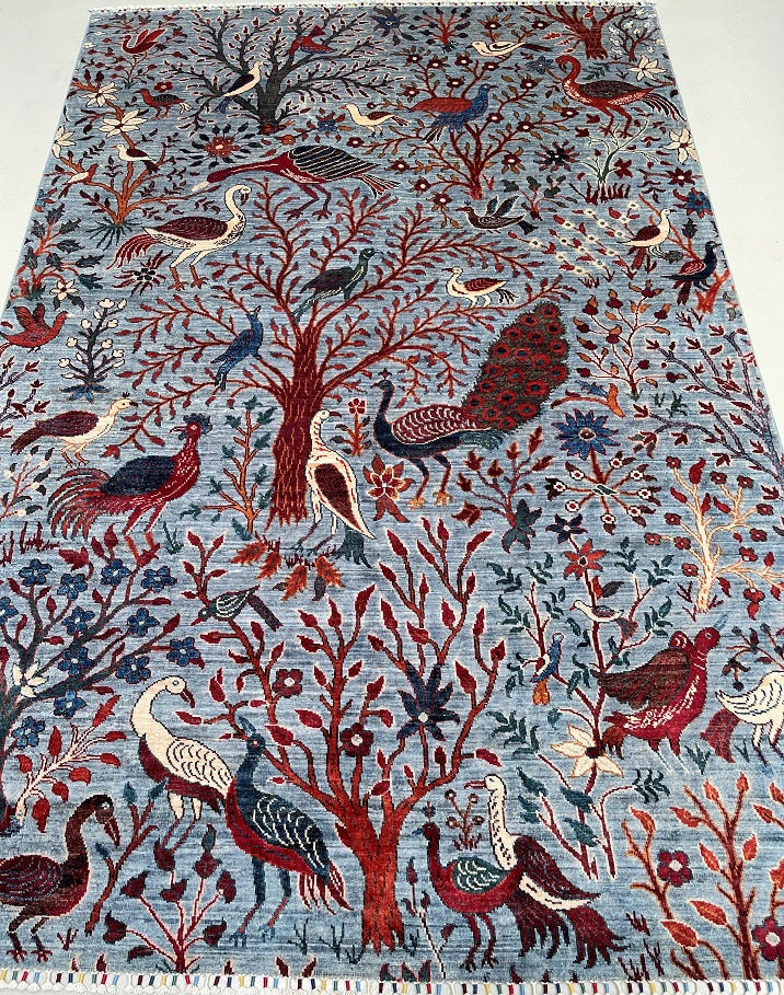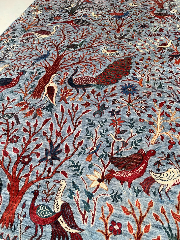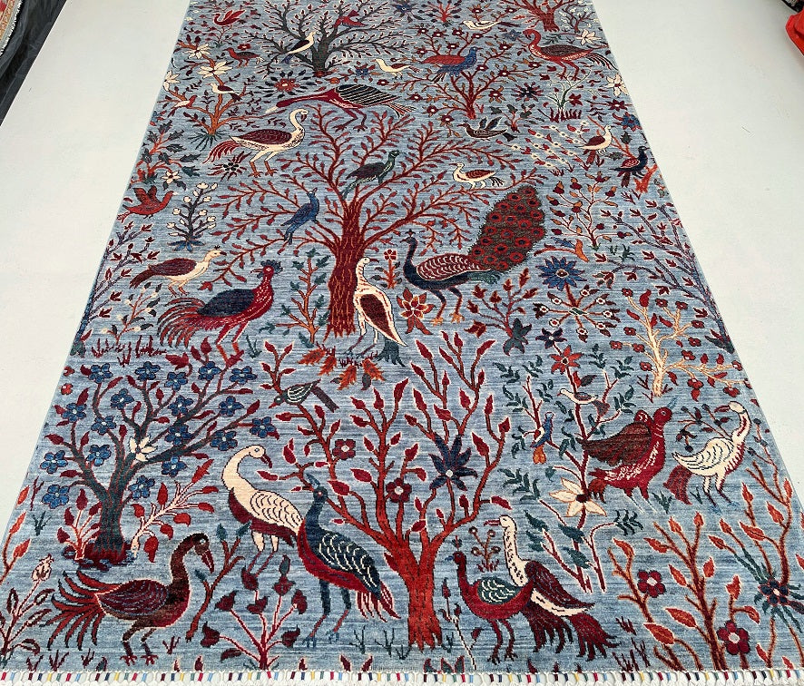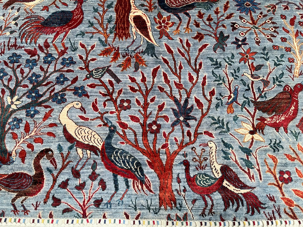 Full Room Size Garden Of Paradise Genuine Hand Knotted Afghan Chobi Rug. Above All It Has A Pure Hand Spun Wool Pile On Cotton Base. Light Blue, Beige, Brown, Orange, Red, And Green Tones Dyed Using Traditional Methods (Vegetable Dyes). Last of True Woven Nomadic Art.