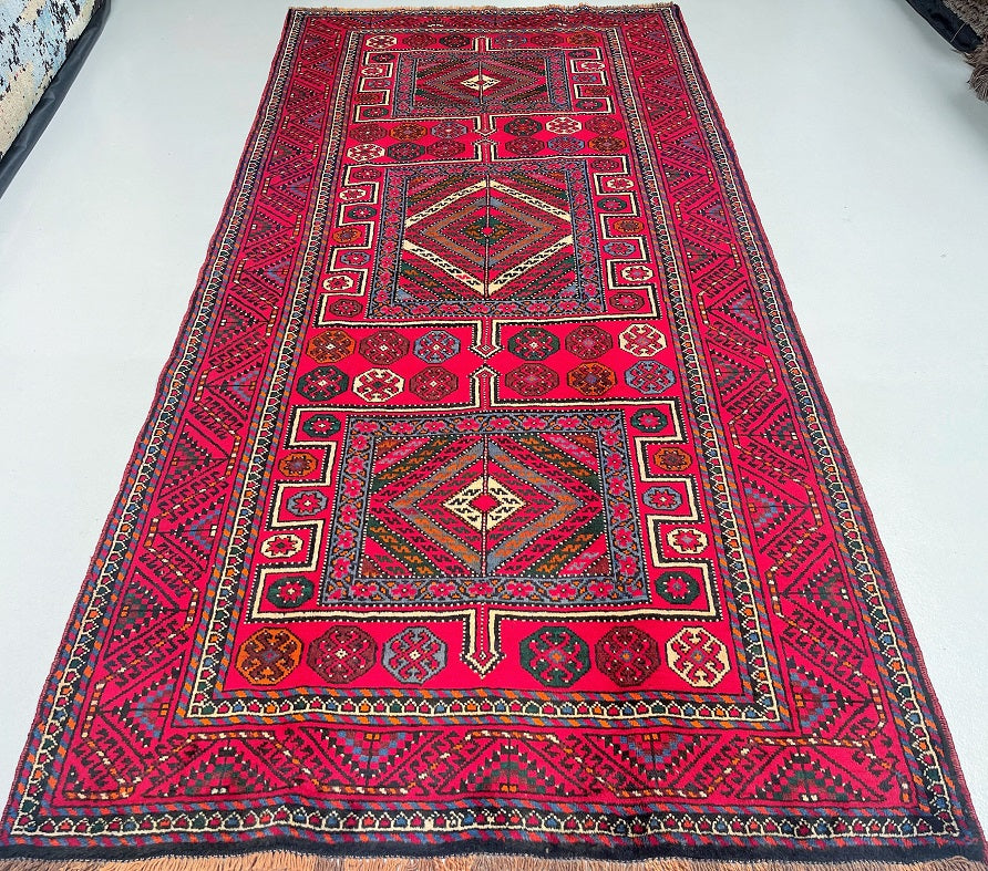 Rare Room Size Authentic Handmade Nomadic Persian Kurdi Quchan Rug. Above All It Has A Pure Hand Spun Wool Pile On Wool Base. It Also Has A Red Tone Organically Dyed Using Traditional Methods.